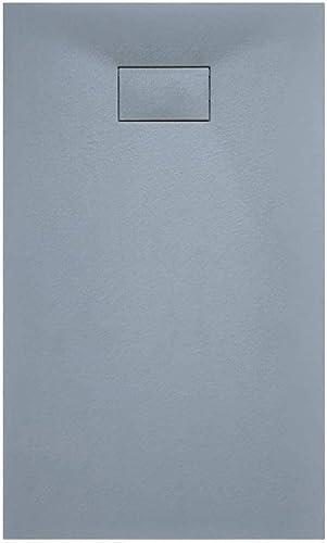 Piatto Doccia Spessore 2.6 Cm In Resina Con Griglia Di Copertura Effetto Pietra Ardesia Stone Riducibile Filopavimento Indistruttibile Antiscivolo Arredo Bagno Colore Grigio (70x120 cm)