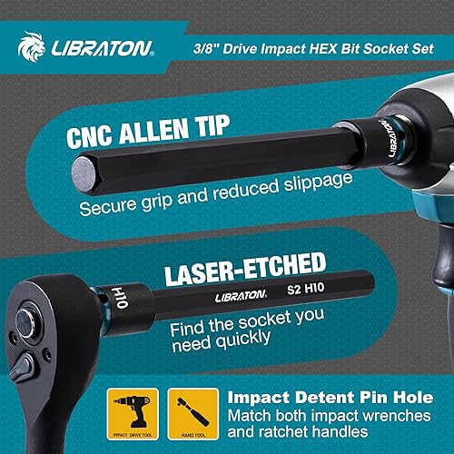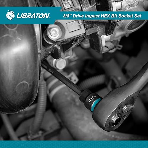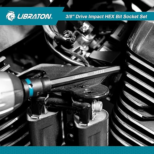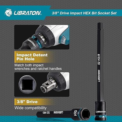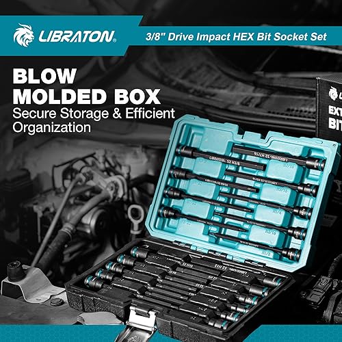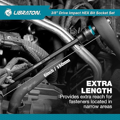 LIBRATON Chiavi Esagonali a Bussola Lunghe 3/8' Attacco, Bussole Esagonali a Impatto, Set di Bussole in Acciaio S2, 20 Bussole per Chiavi a Brugola, Metriche e SAE, Bussole Punte a Brugola Lungo da 6'