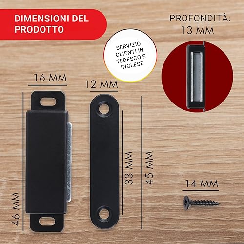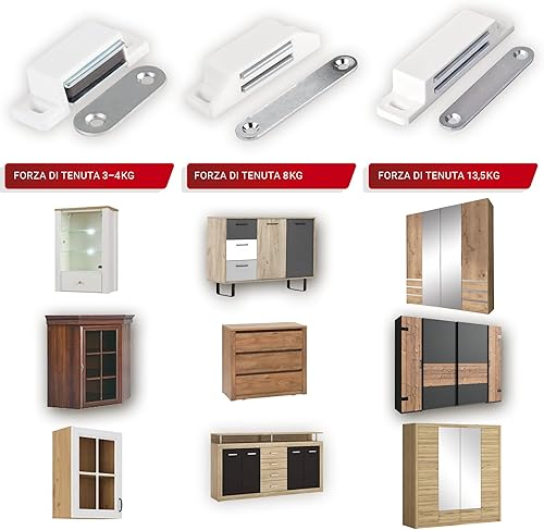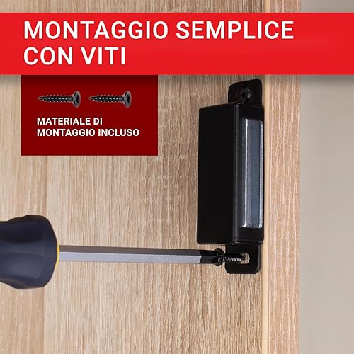 Chiusura Magnetico - forza di tenuta 4kg - set di 4 in nero - magnete per porte - magneti per mobili - fermo magnetico per porte in acciaio inox - supporto magnetico per porta dell'armadio