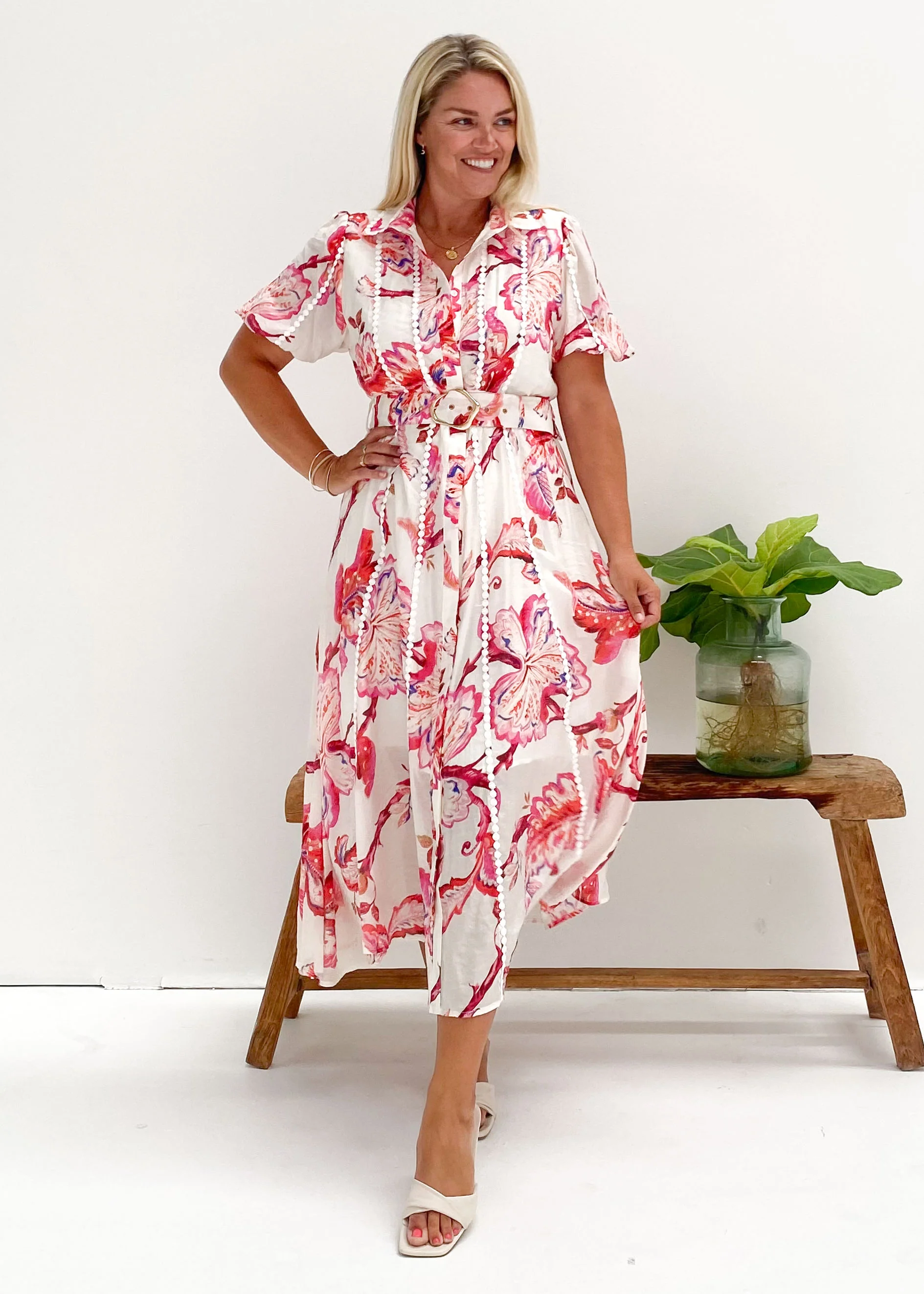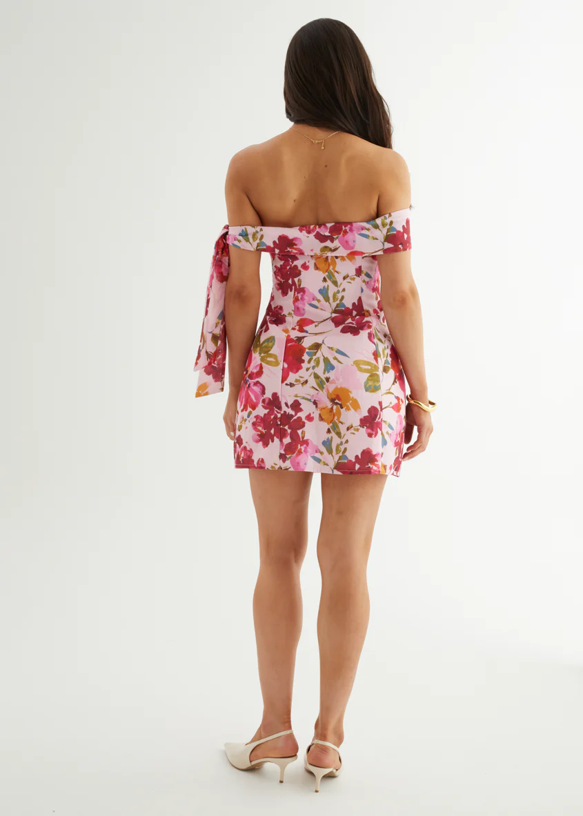 Maliya Off Shoulder Dress - Pink Blossom