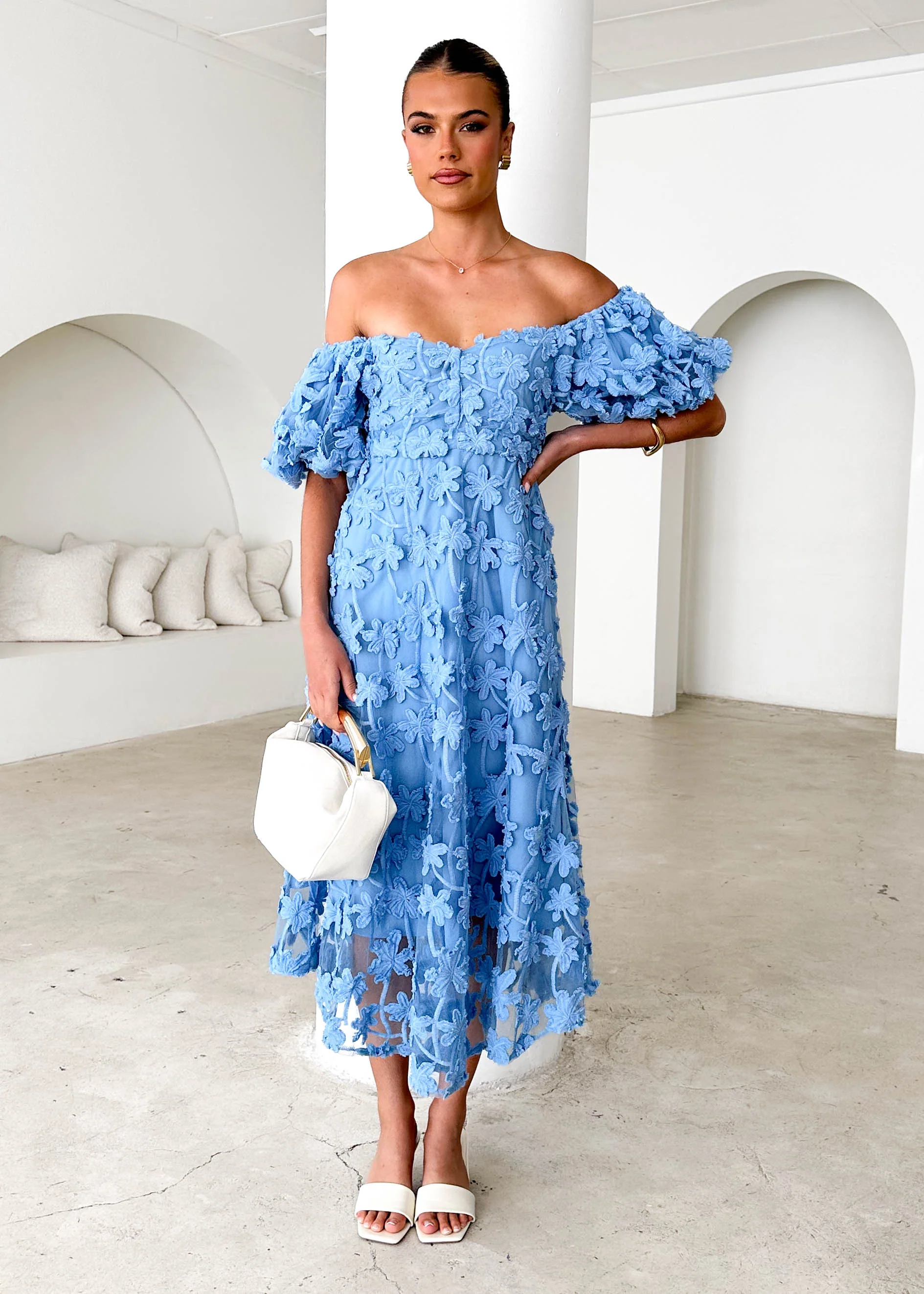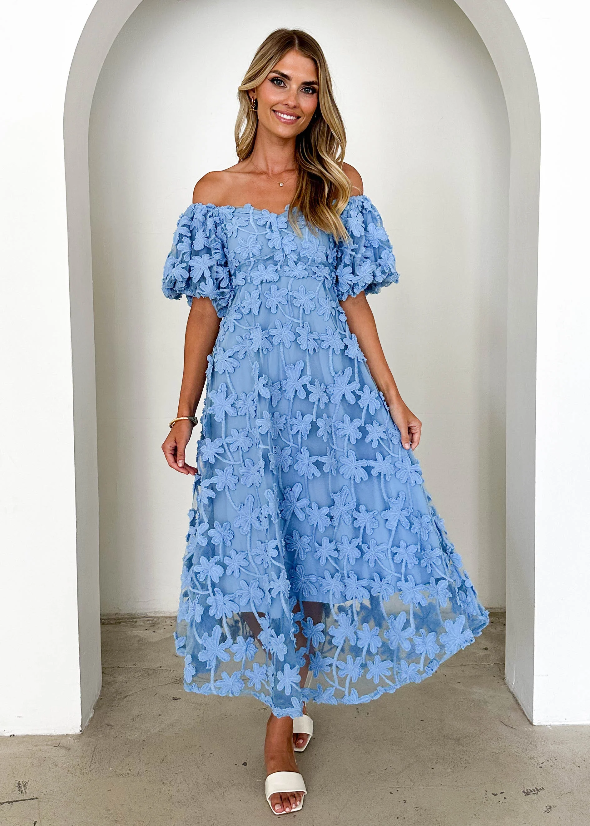 Maliah Off Shoulder Midi Dress - Blue Lace