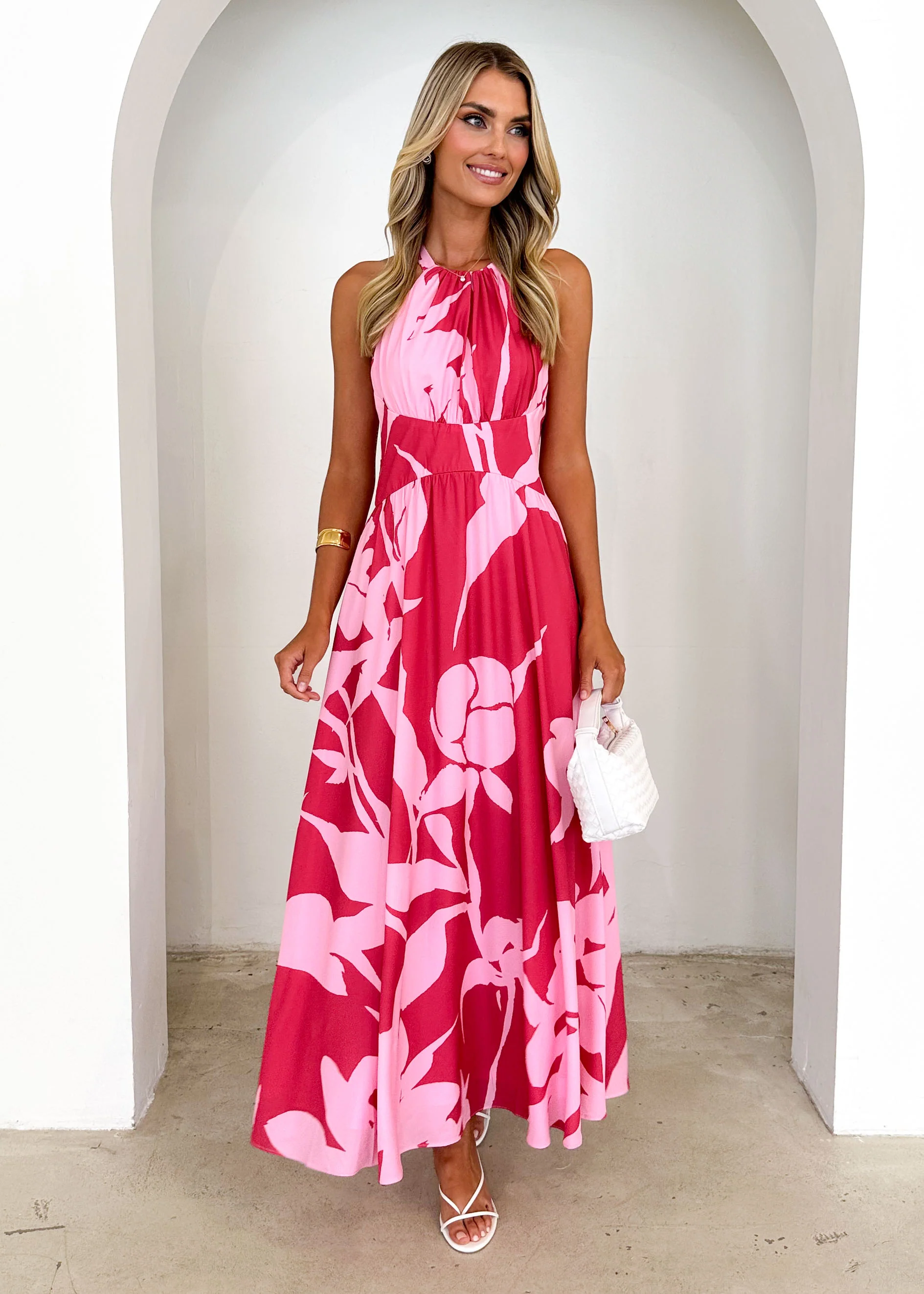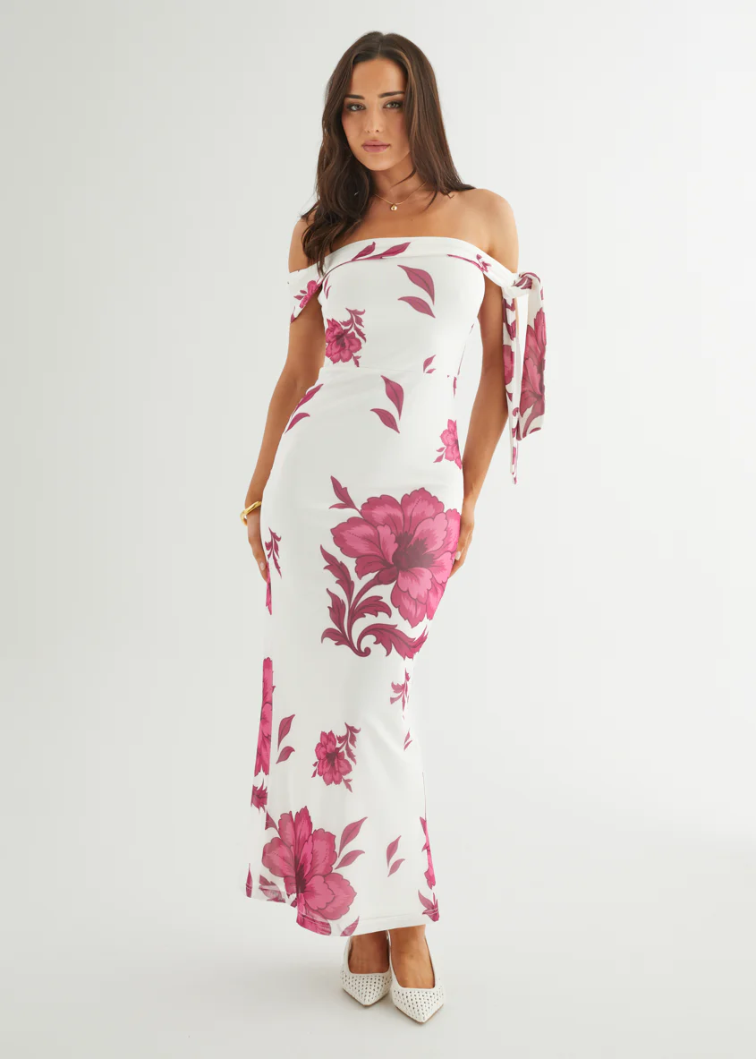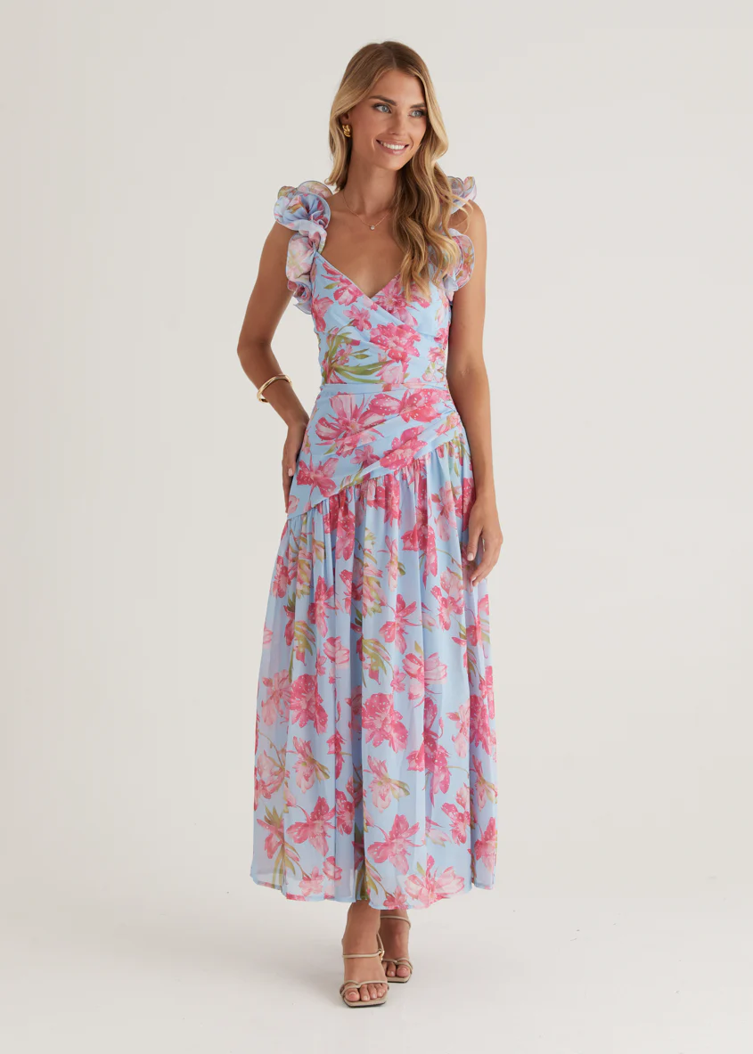 Madisyn Mesh Maxi Dress - Berry Flowers