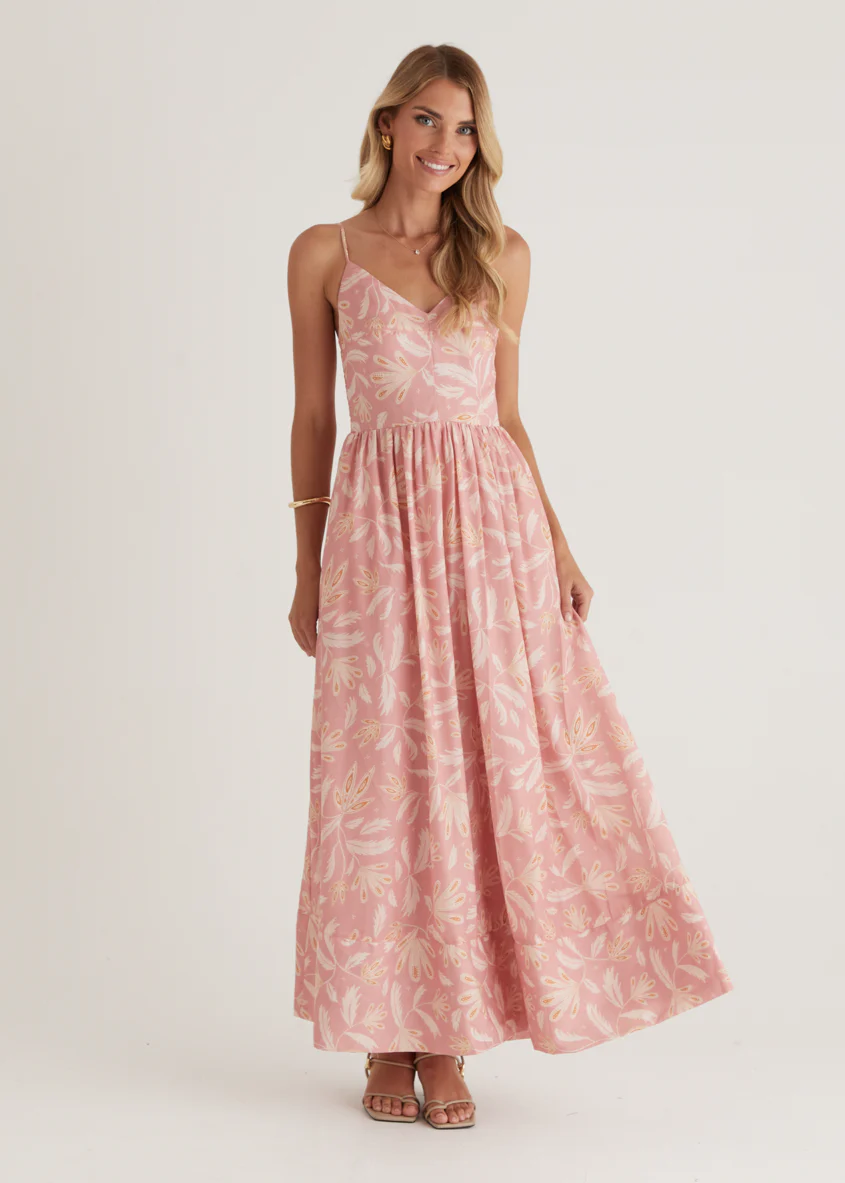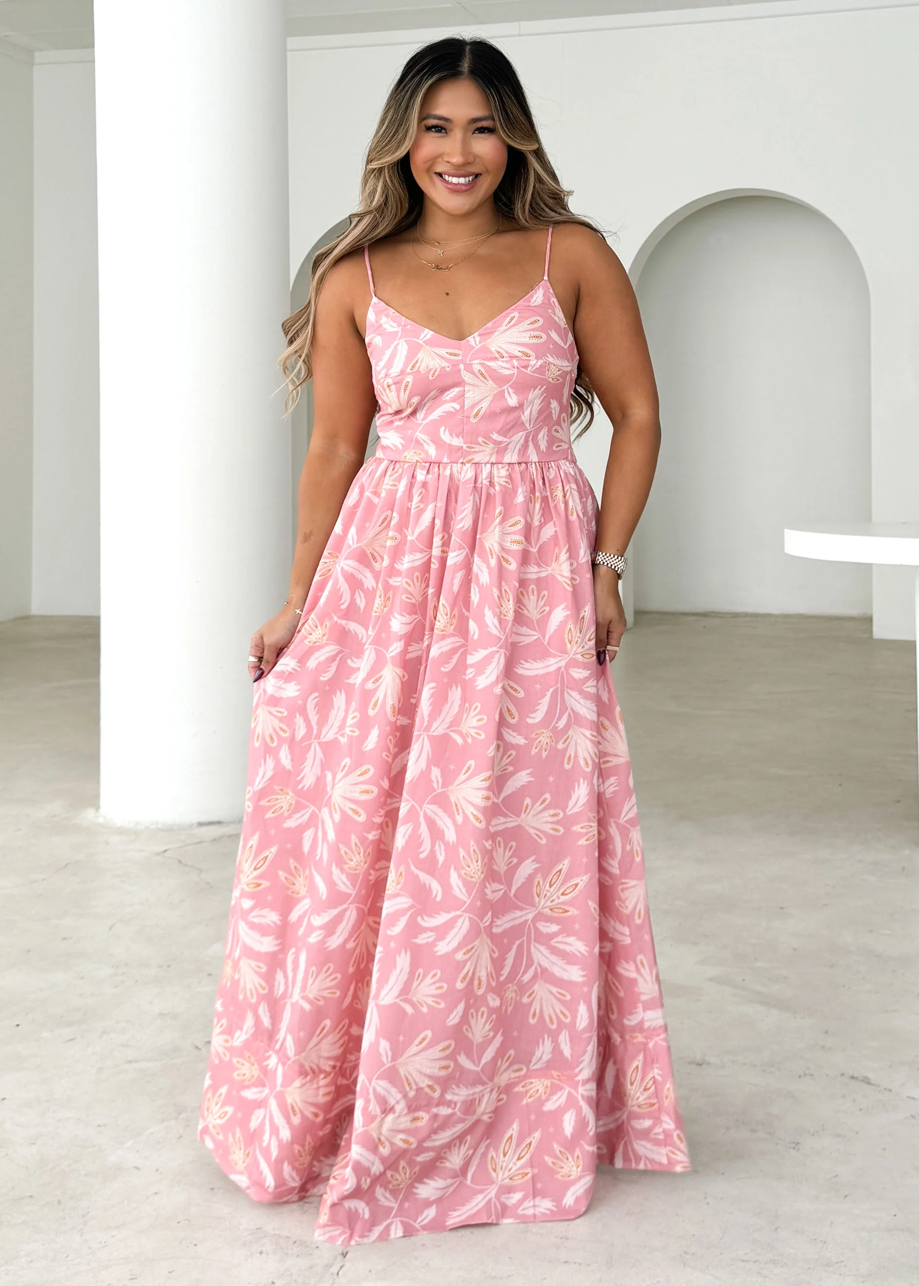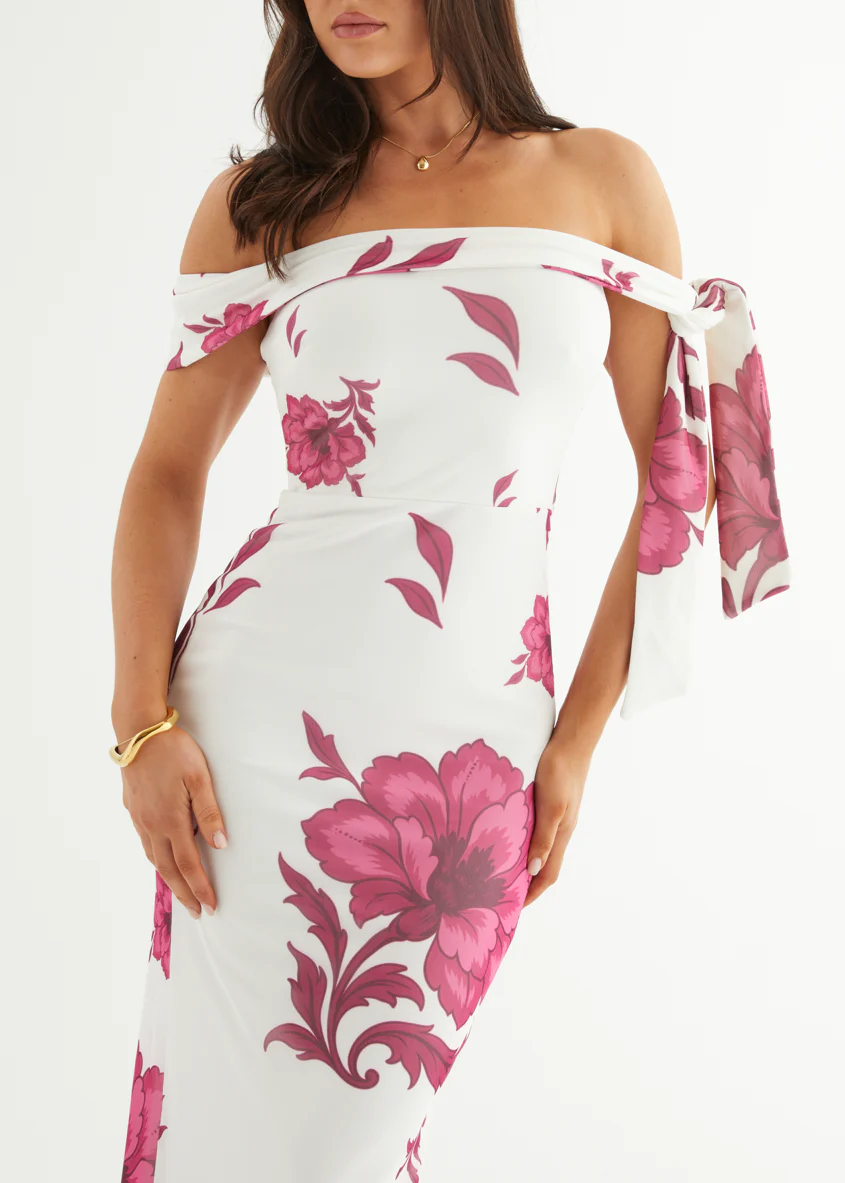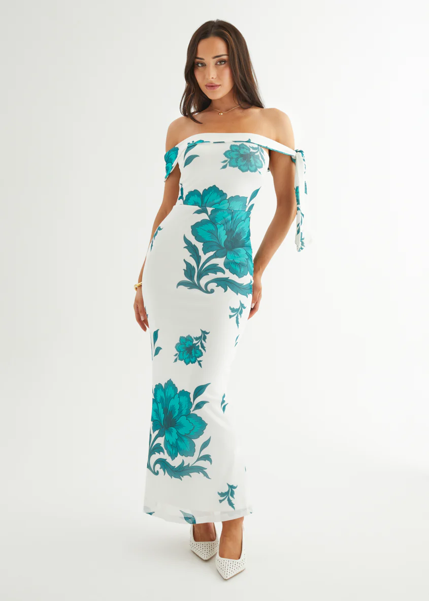 Madisyn Mesh Maxi Dress - Berry Flowers