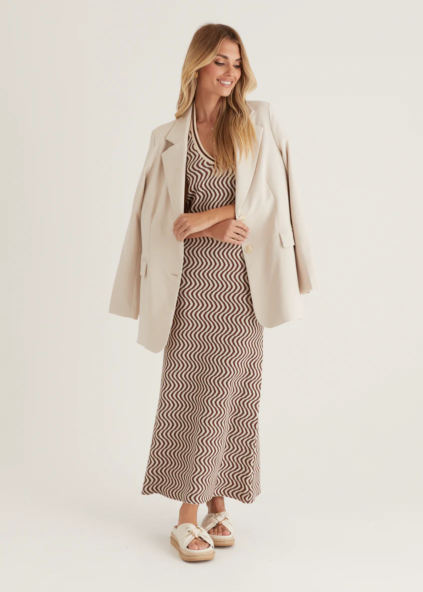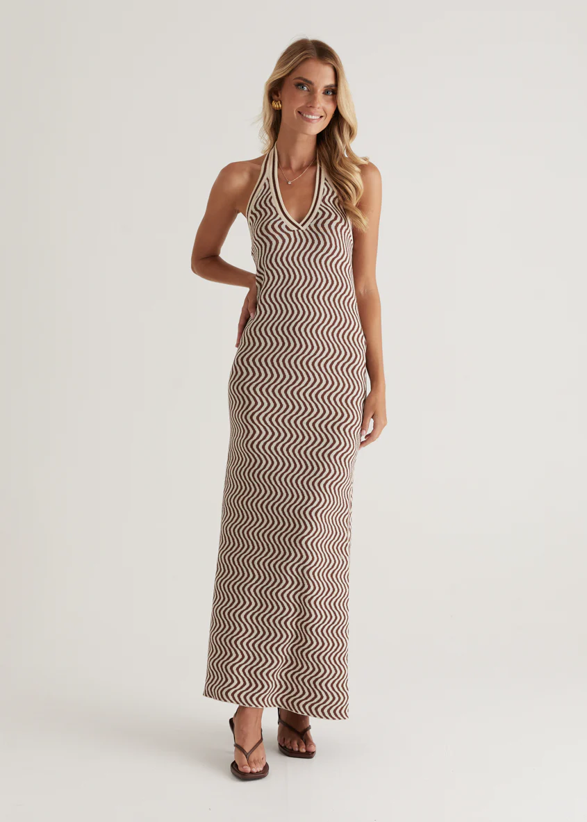 Lorelai Halter Knit Maxi Dress - Brown Swirl
