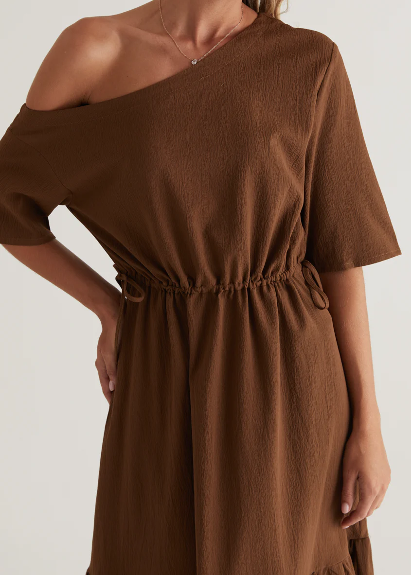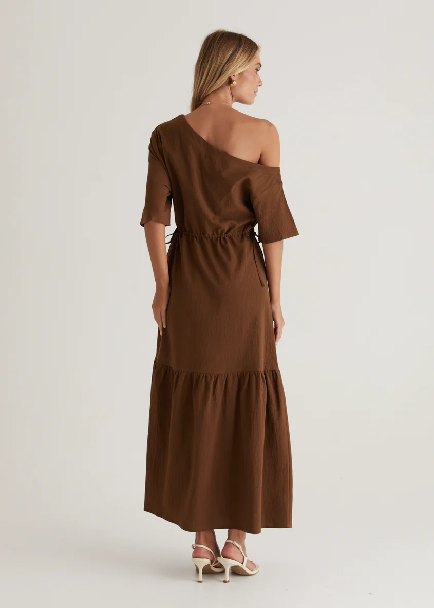 Loren Drop Shoulder Maxi Dress - Chocolate