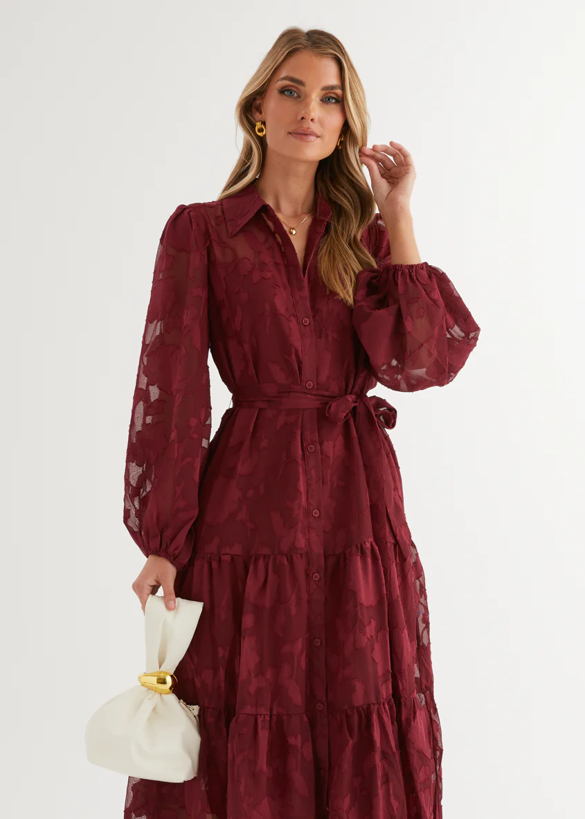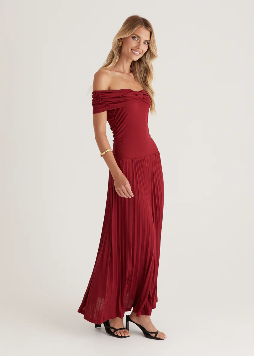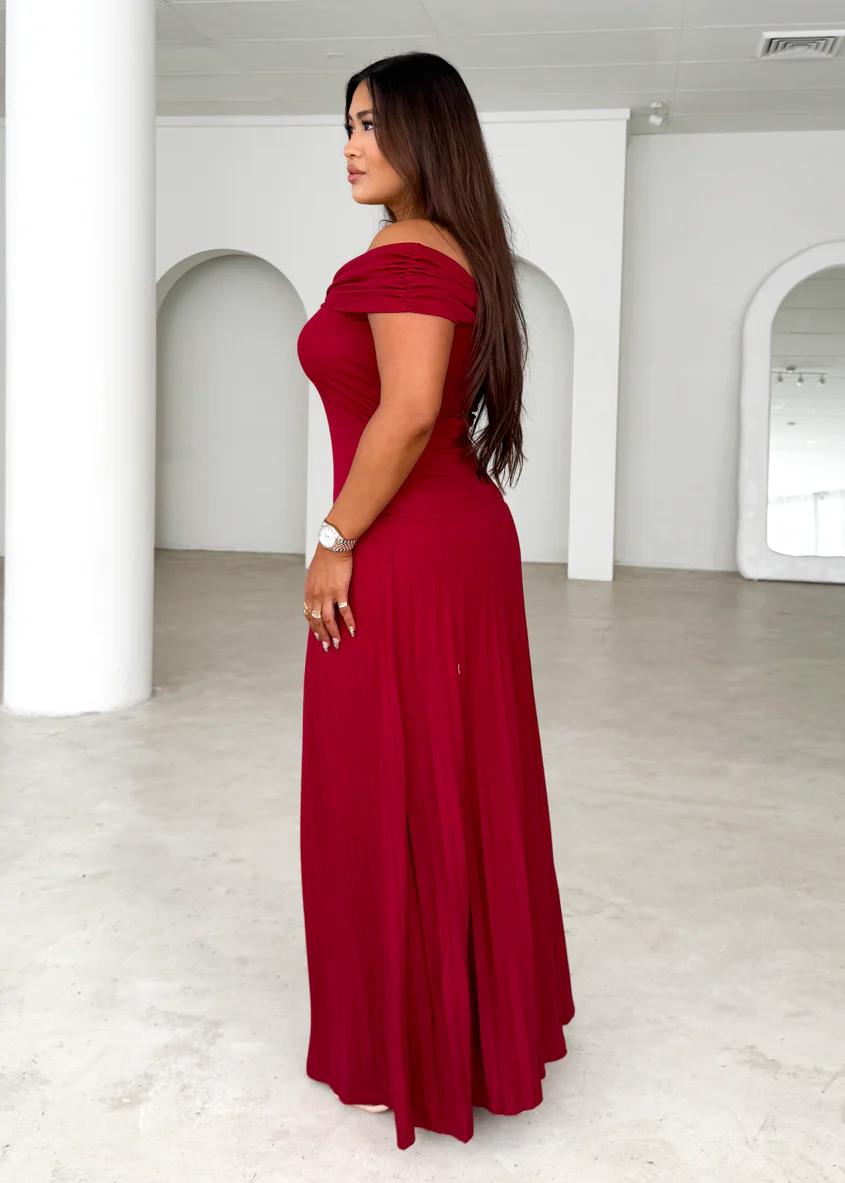 Lottie Off Shoulder Maxi Dress - Burgundy