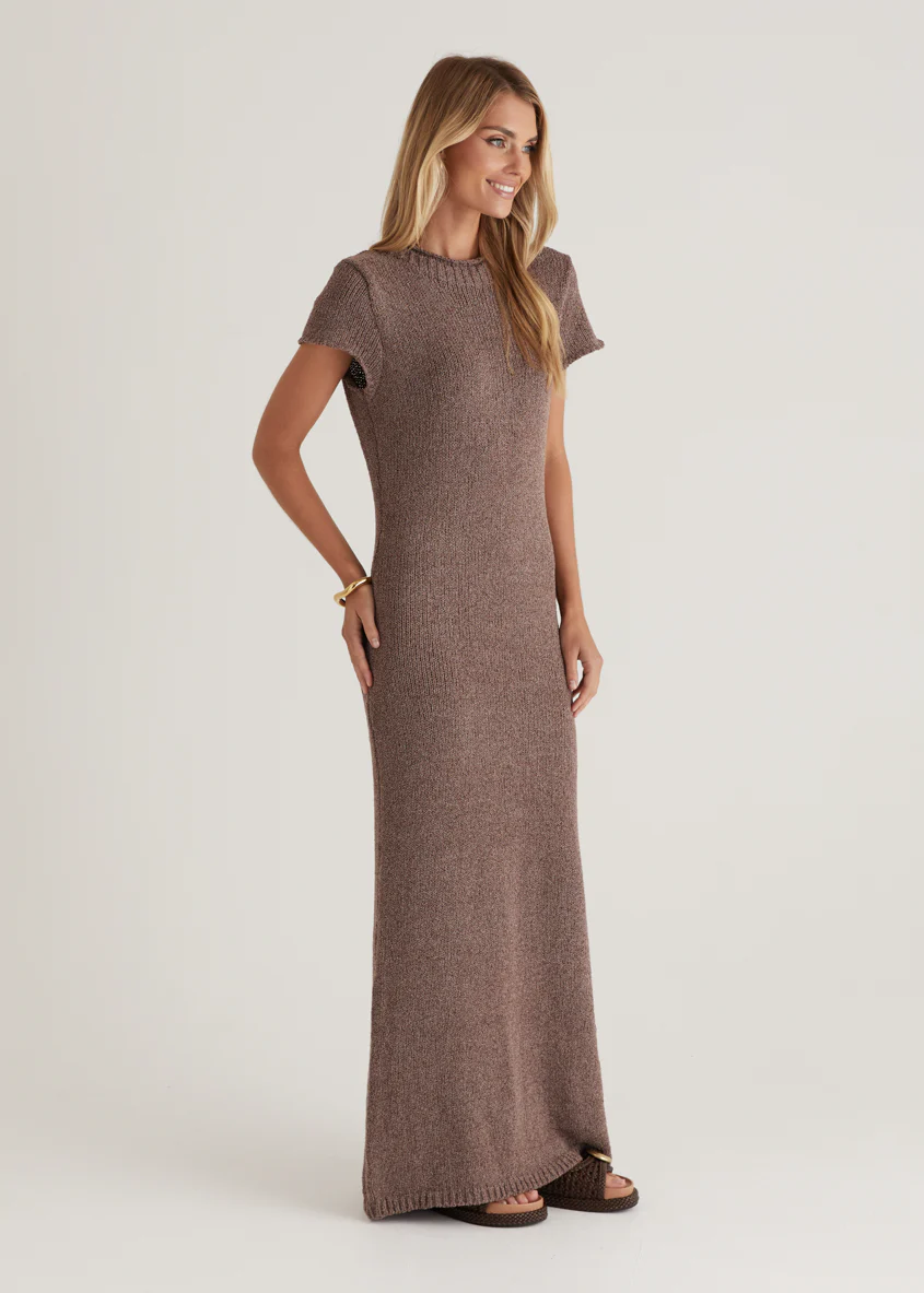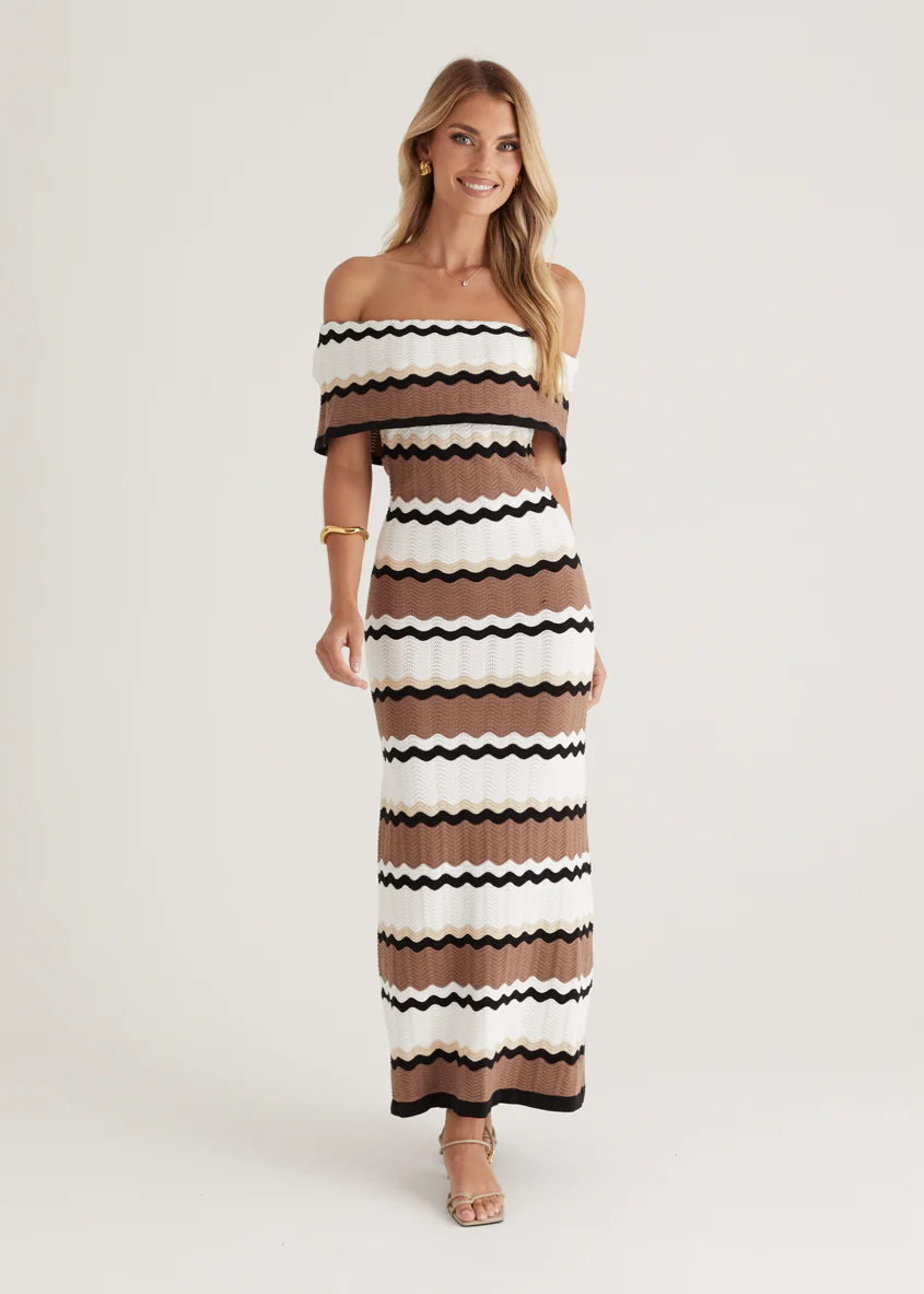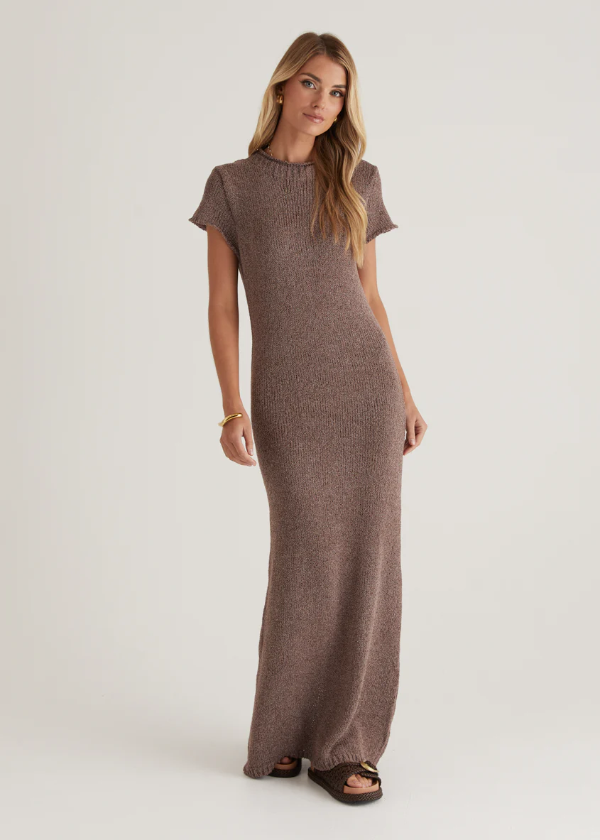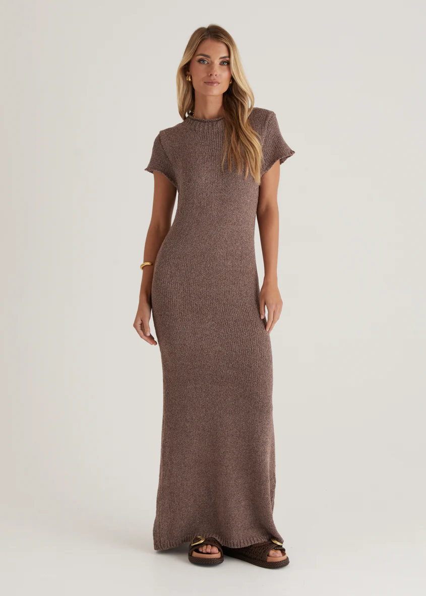 Kombi Off Shoulder Knit Maxi Dress - Mocha