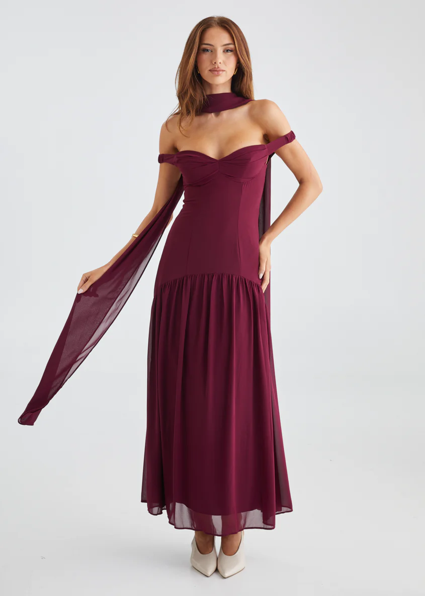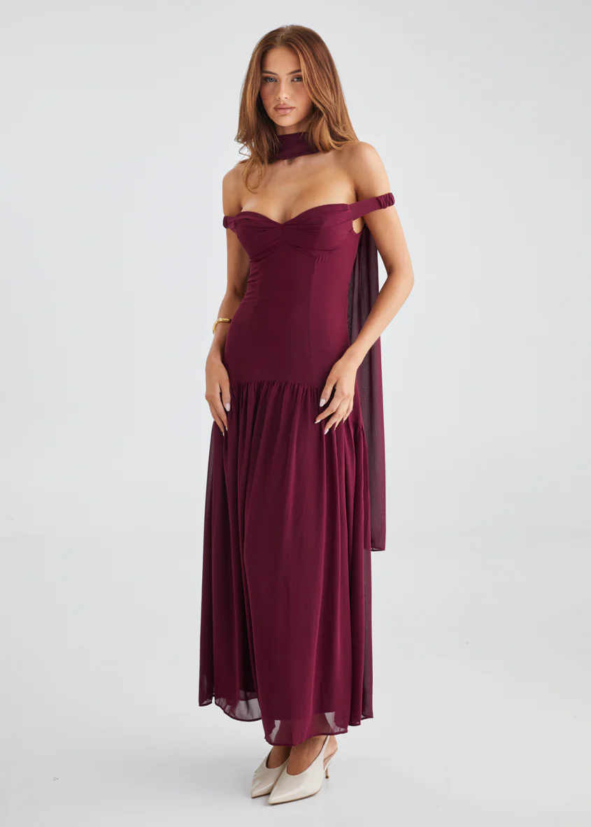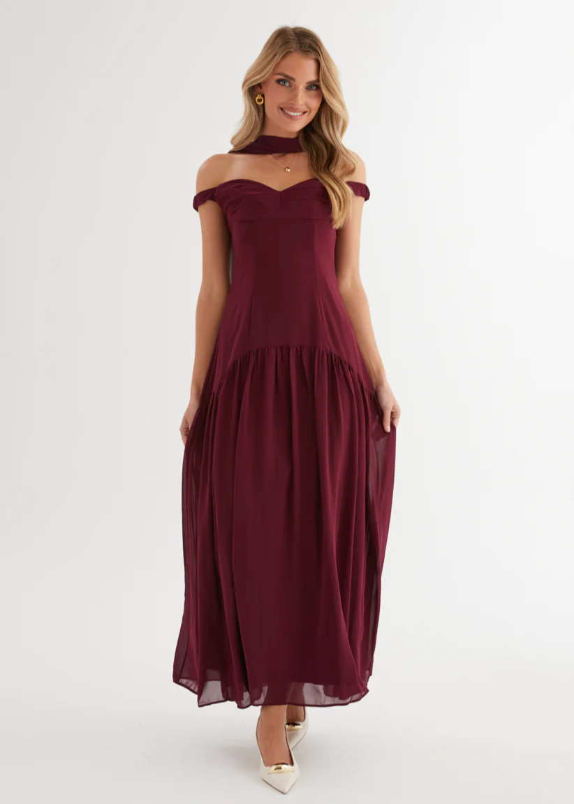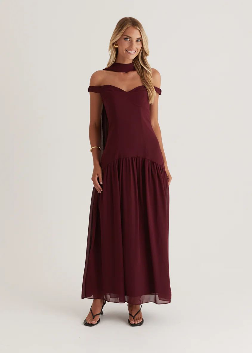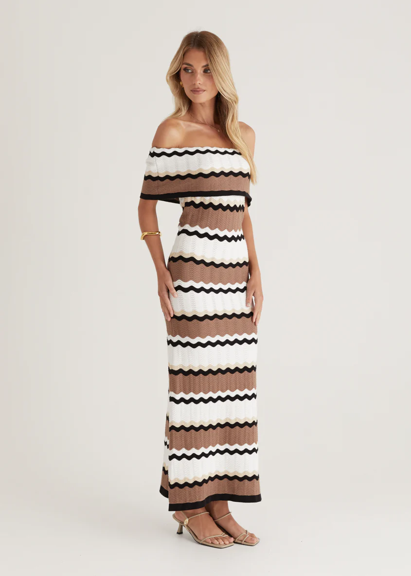 Kombi Off Shoulder Knit Maxi Dress - Mocha