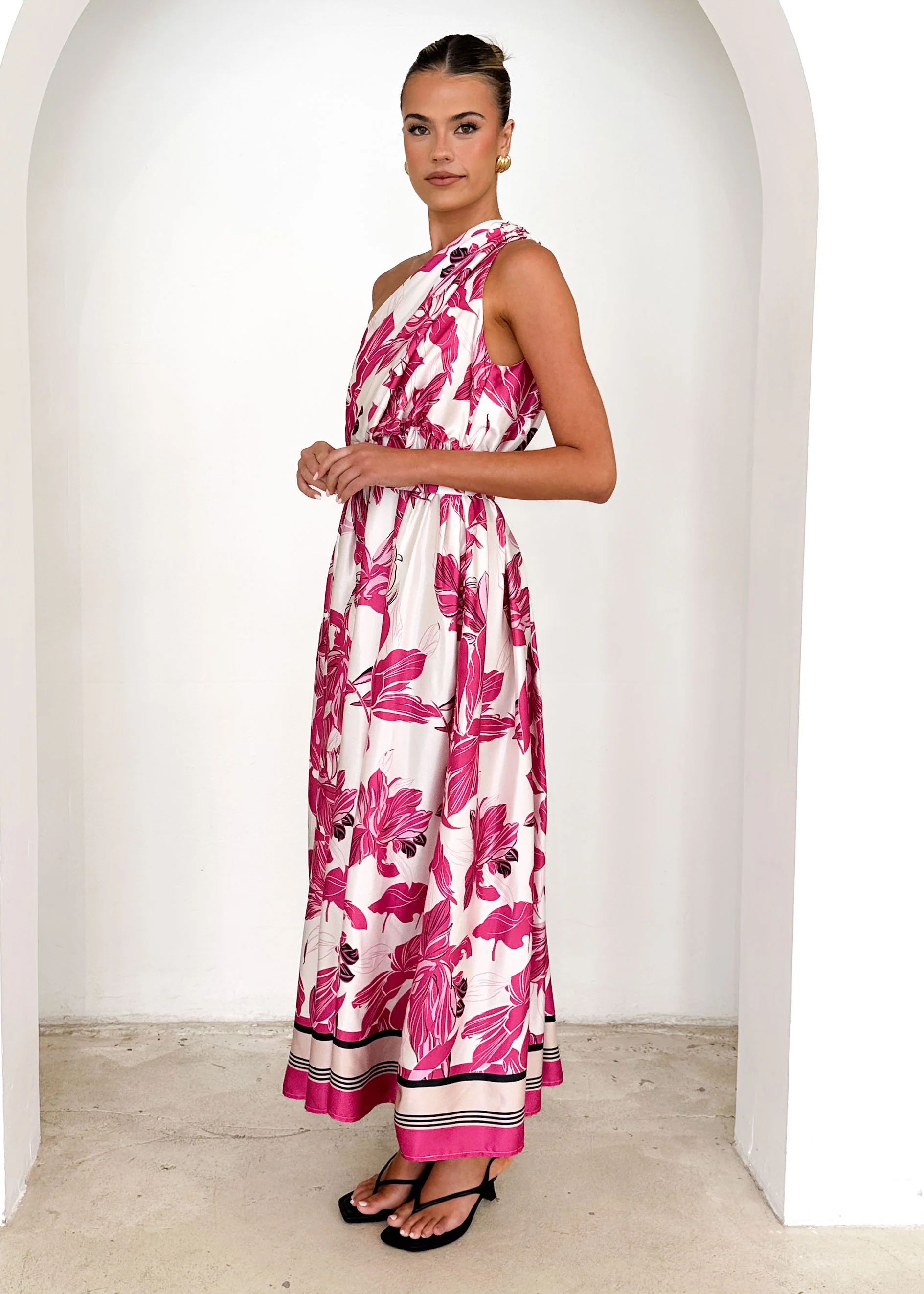 Korah One Shoulder Midi Dress - Fuchsia Floral
