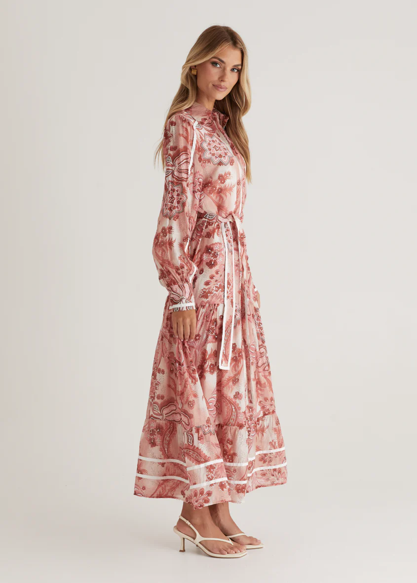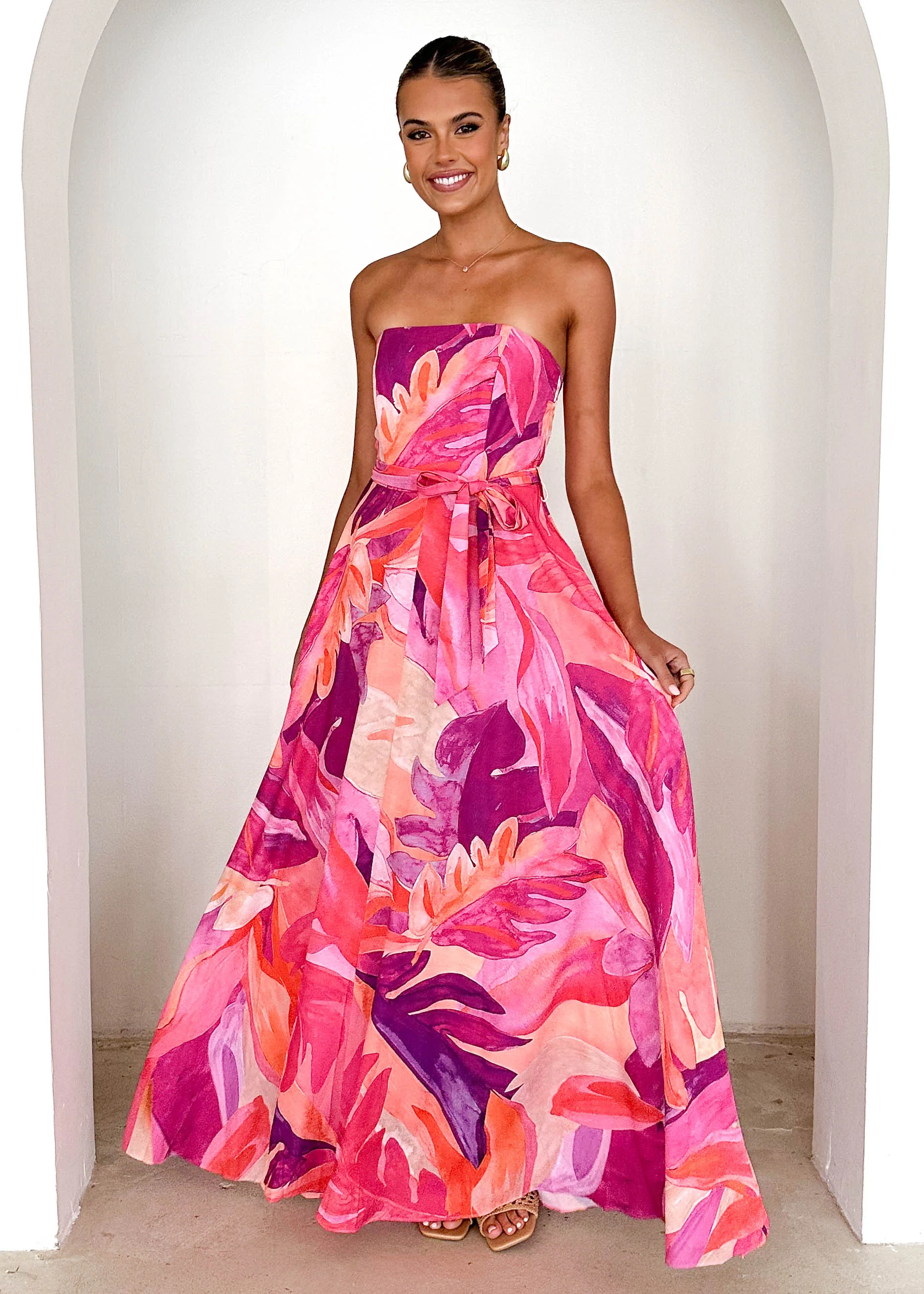 Jorgia Strapless Maxi Dress - Pink Abstract