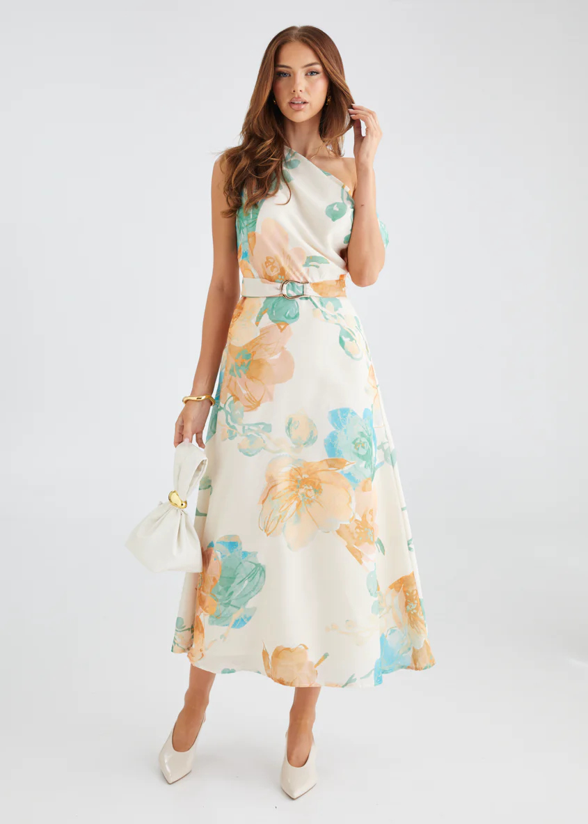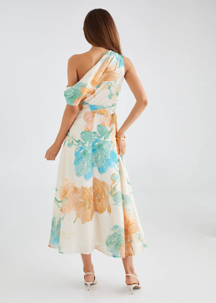 Jacqui Drop Shoulder Midi Dress - Tangerine Floral