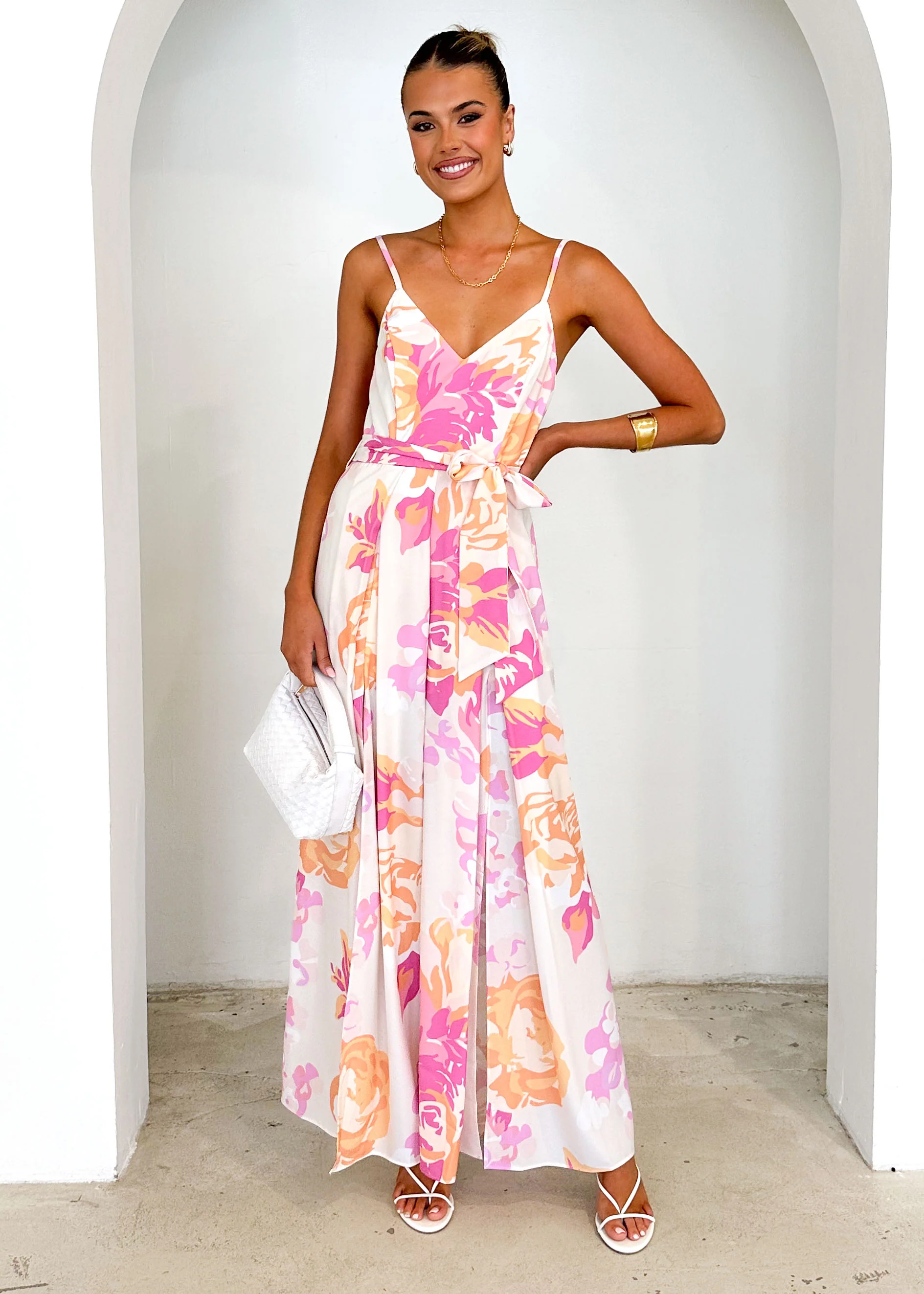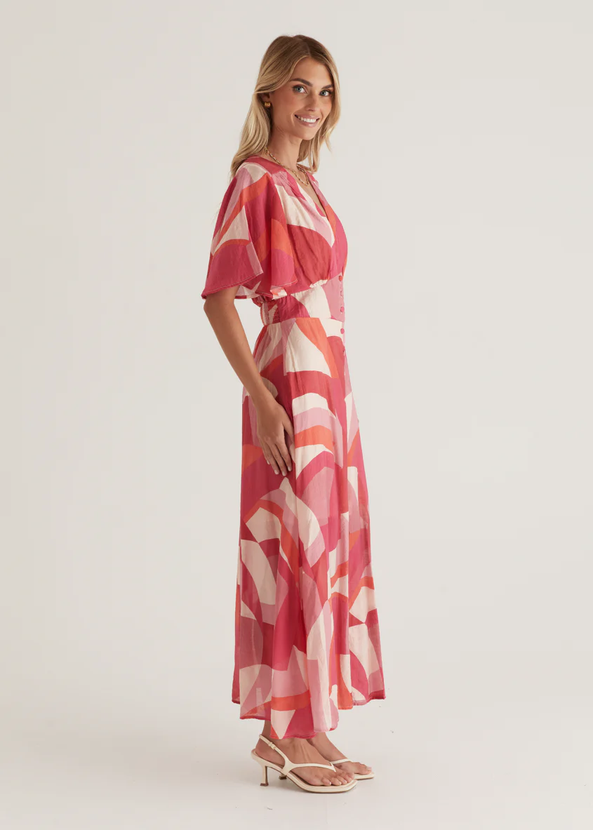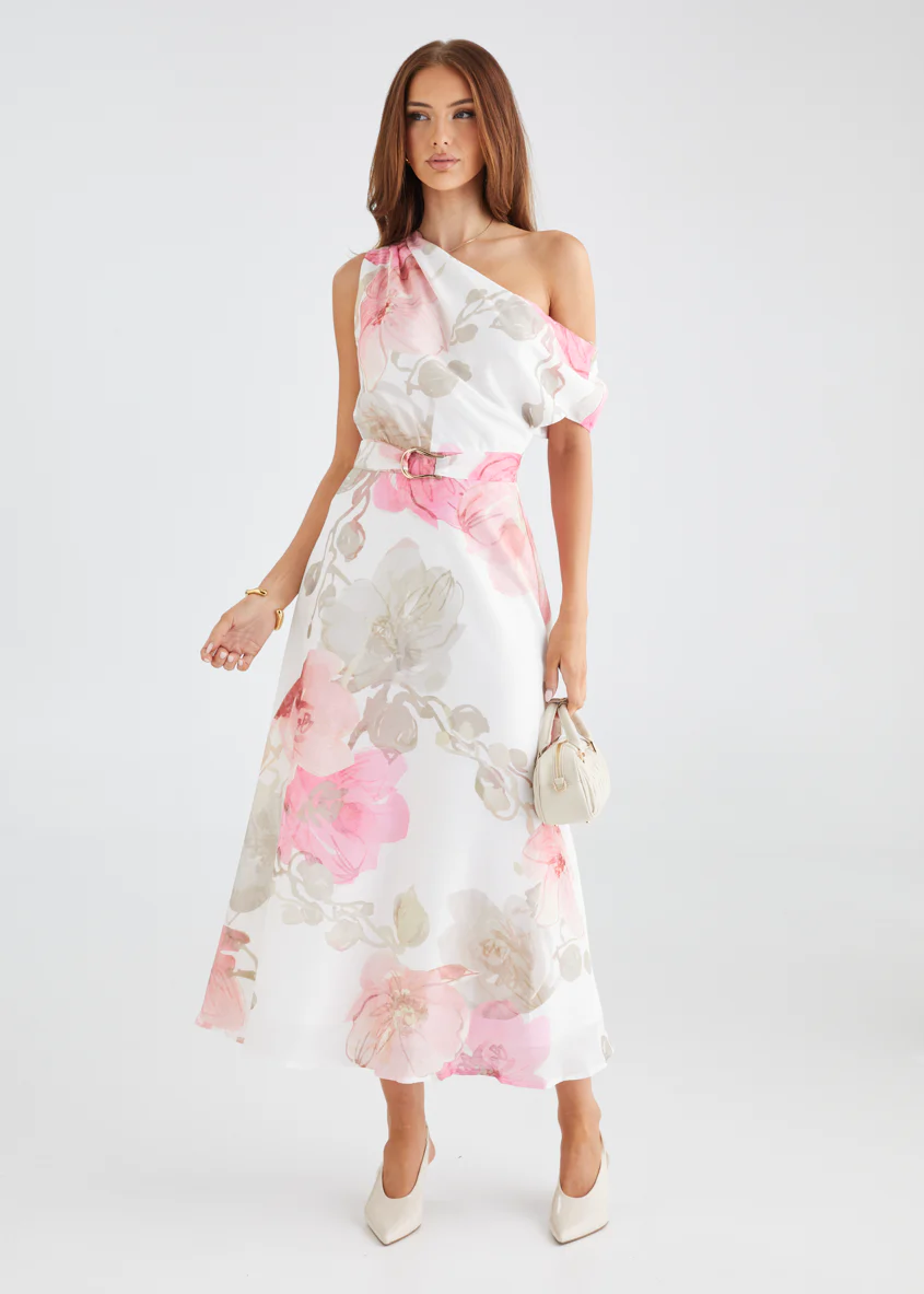Jacqui Drop Shoulder Midi Dress - Pink Floral