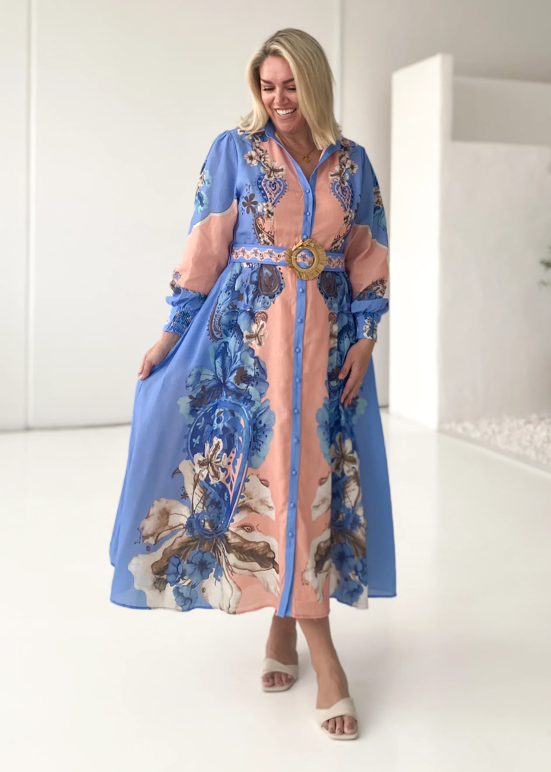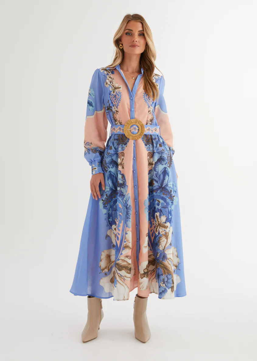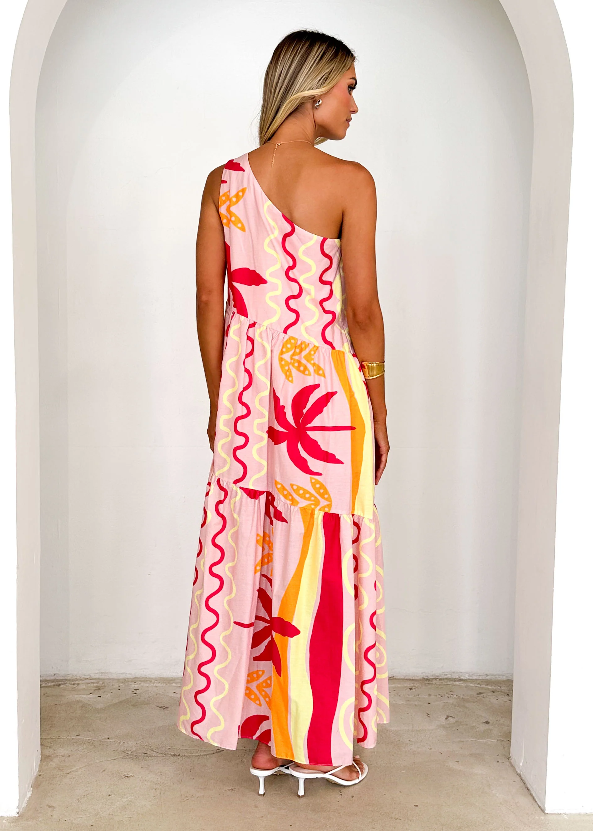 Iris Off Shoulder Mesh Maxi Dress - Hot Pink Floral