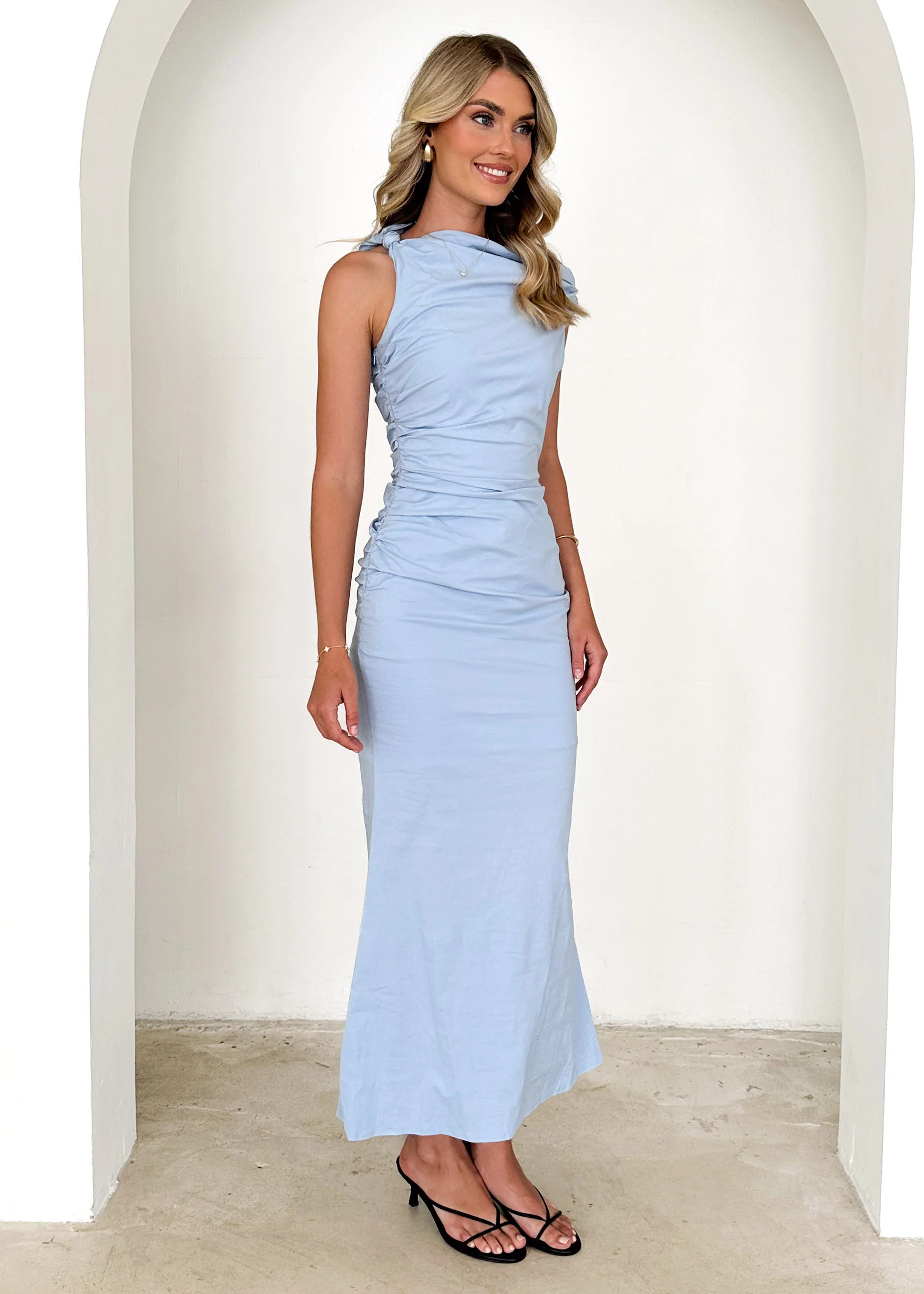Gem One Shoulder Maxi Dress - Sky Blue
