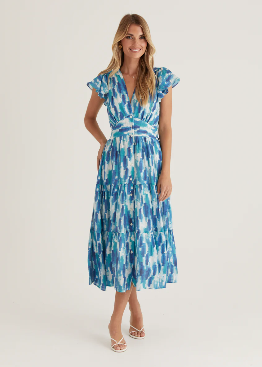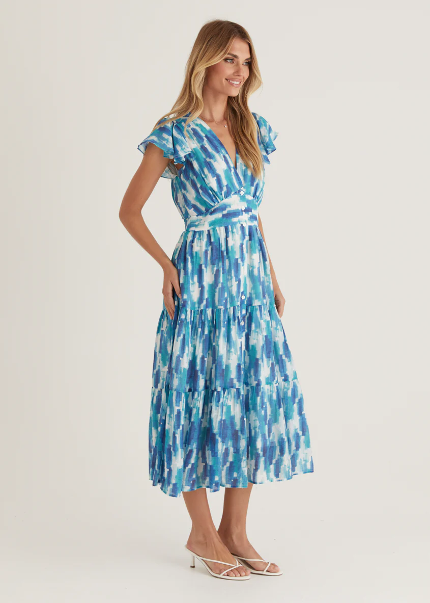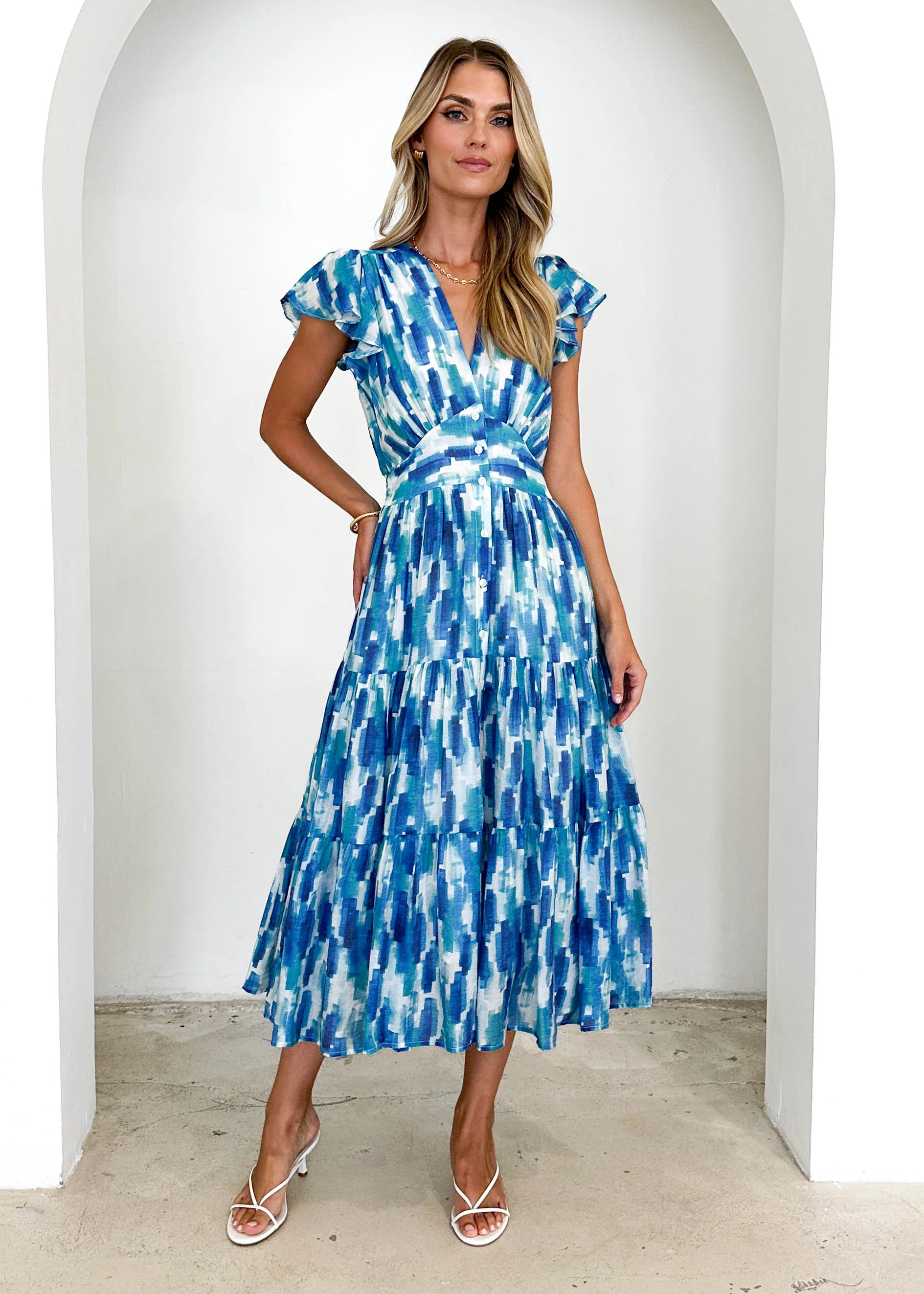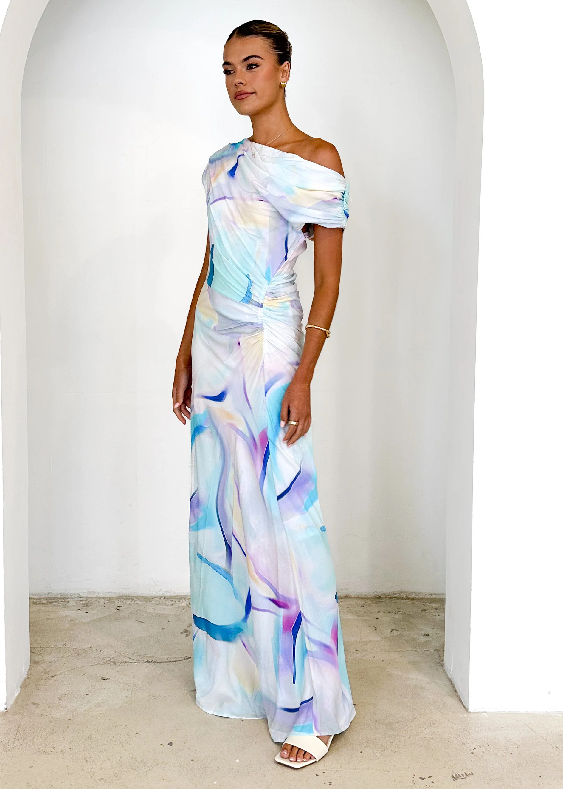 Flirtini One Shoulder Maxi Dress - Blue Swirl