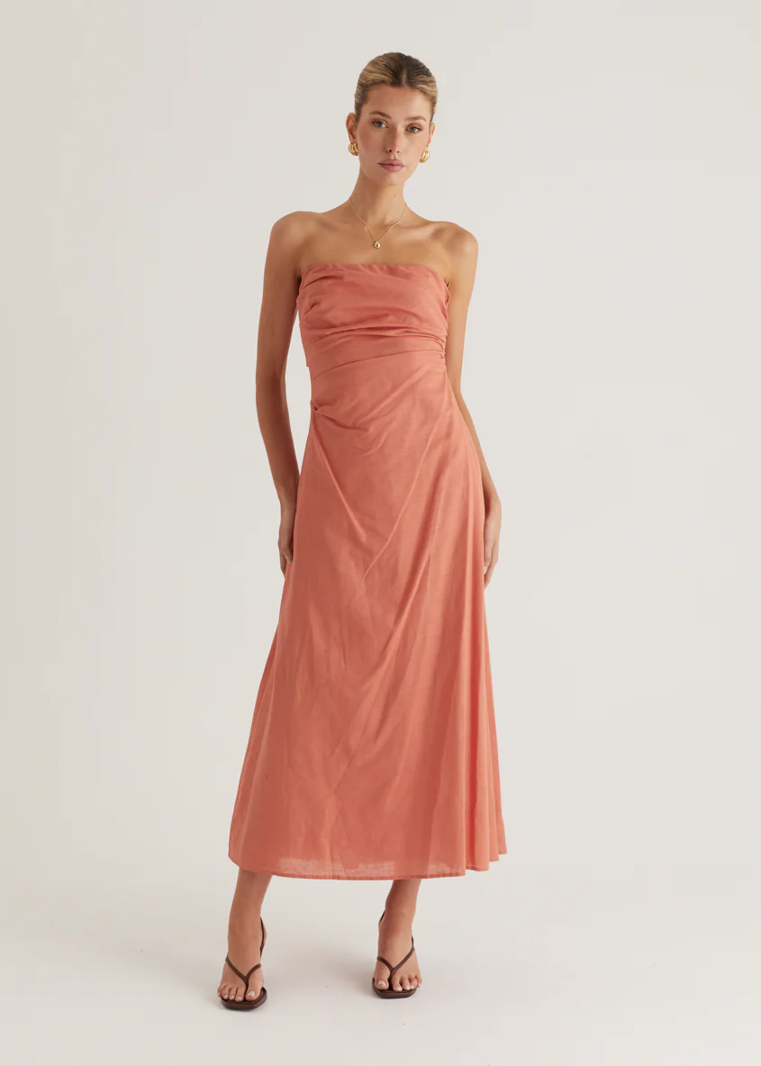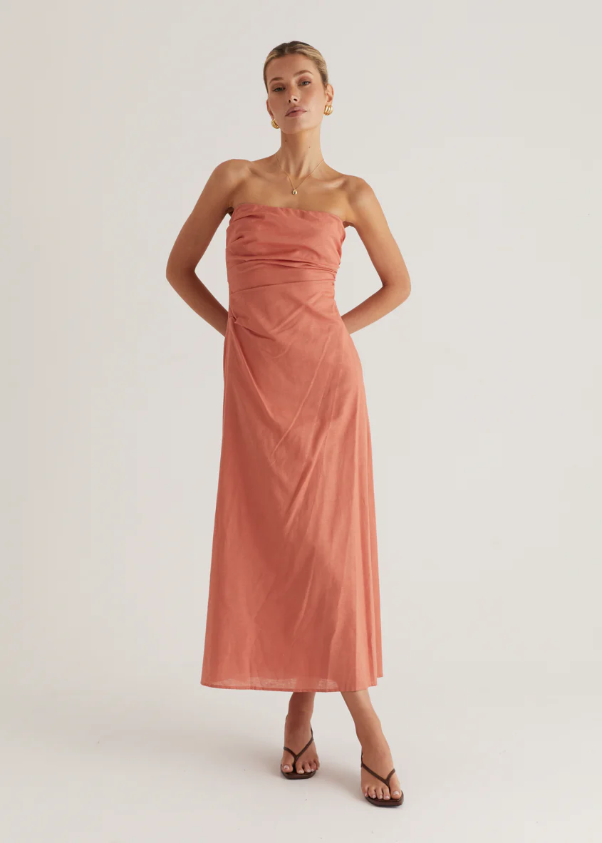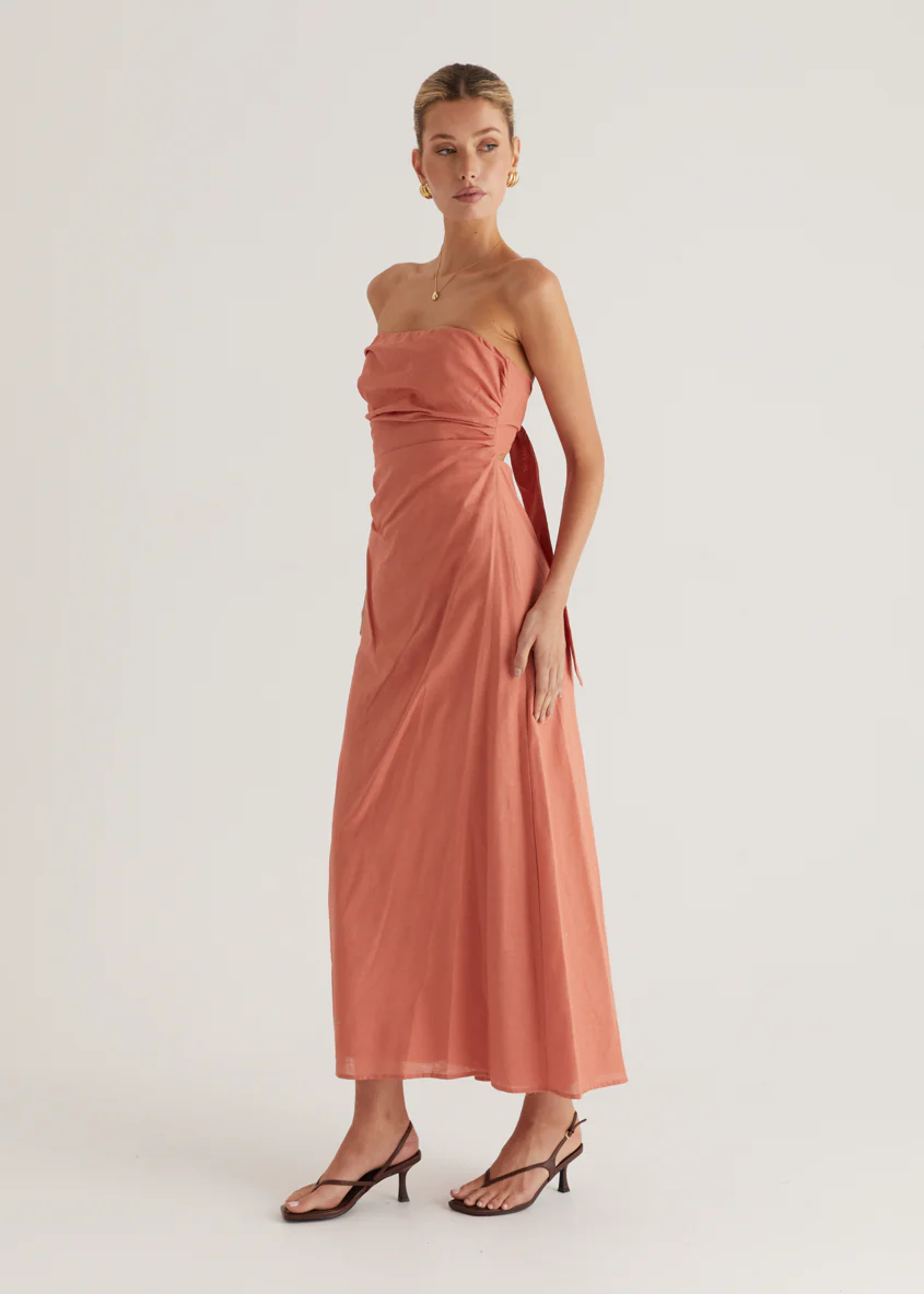 Emily Strapless Maxi Dress - Coral