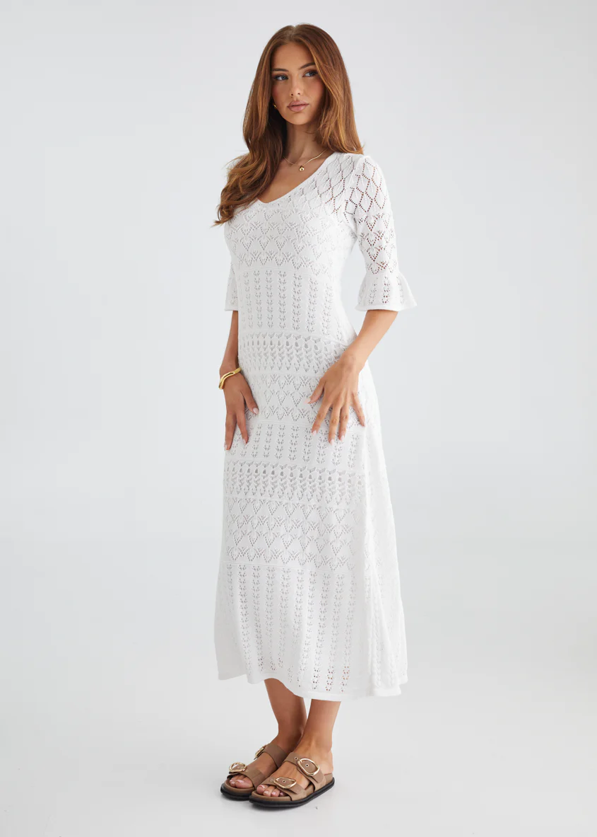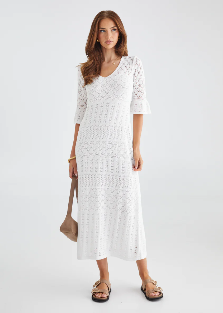 Estrela Crochet Midi Dress - Off White