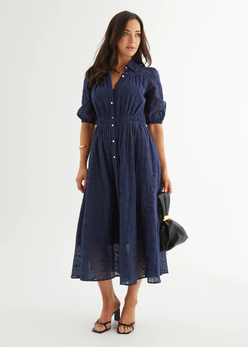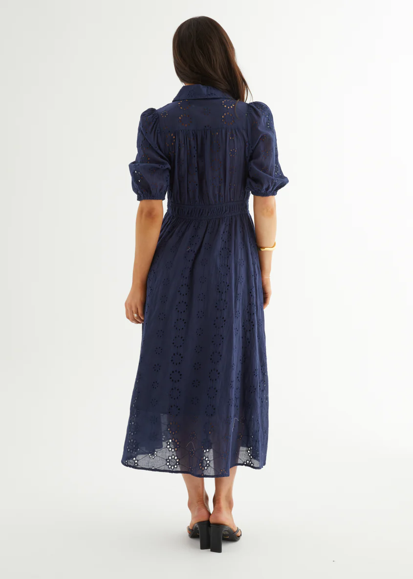 Eryn Midi Dress - Navy Anglaise