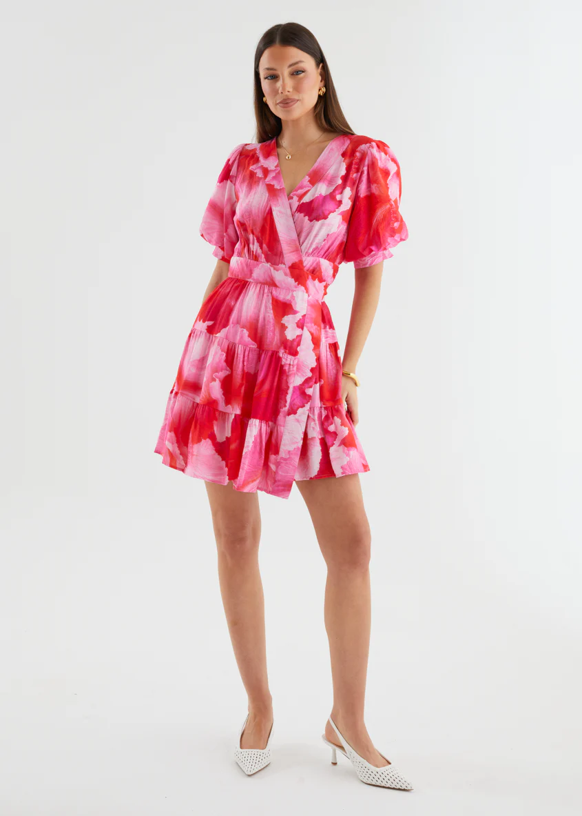 Emely Wrap Dress - Strawberry Abstract
