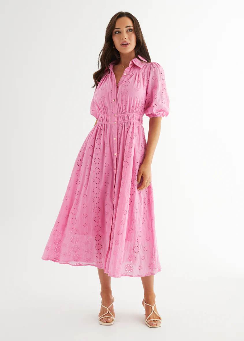 Eryn Midi Dress - Pink Anglaise