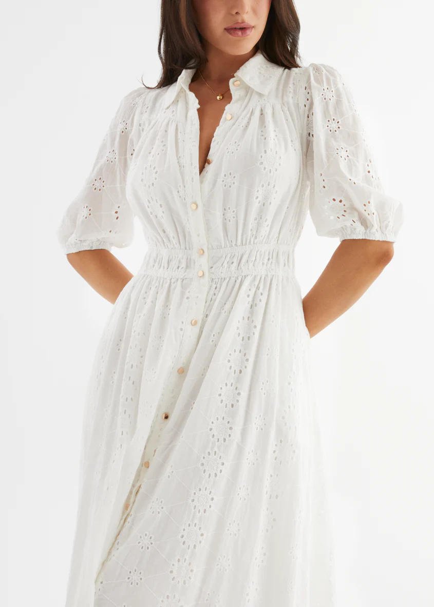 Eryn Midi Dress - White Anglaise