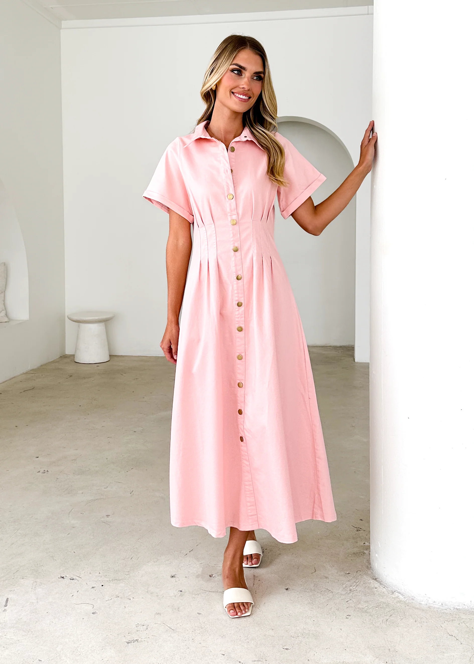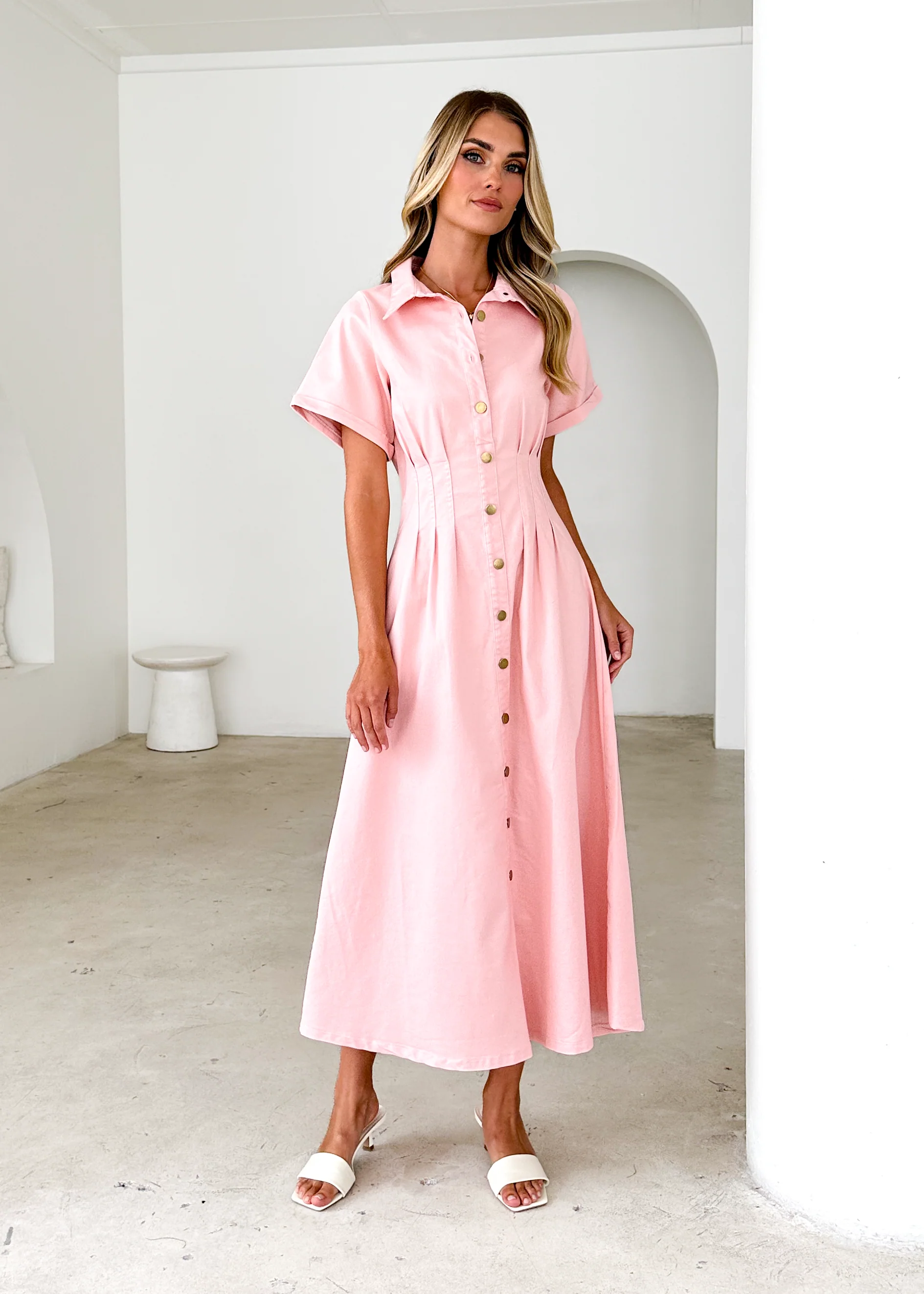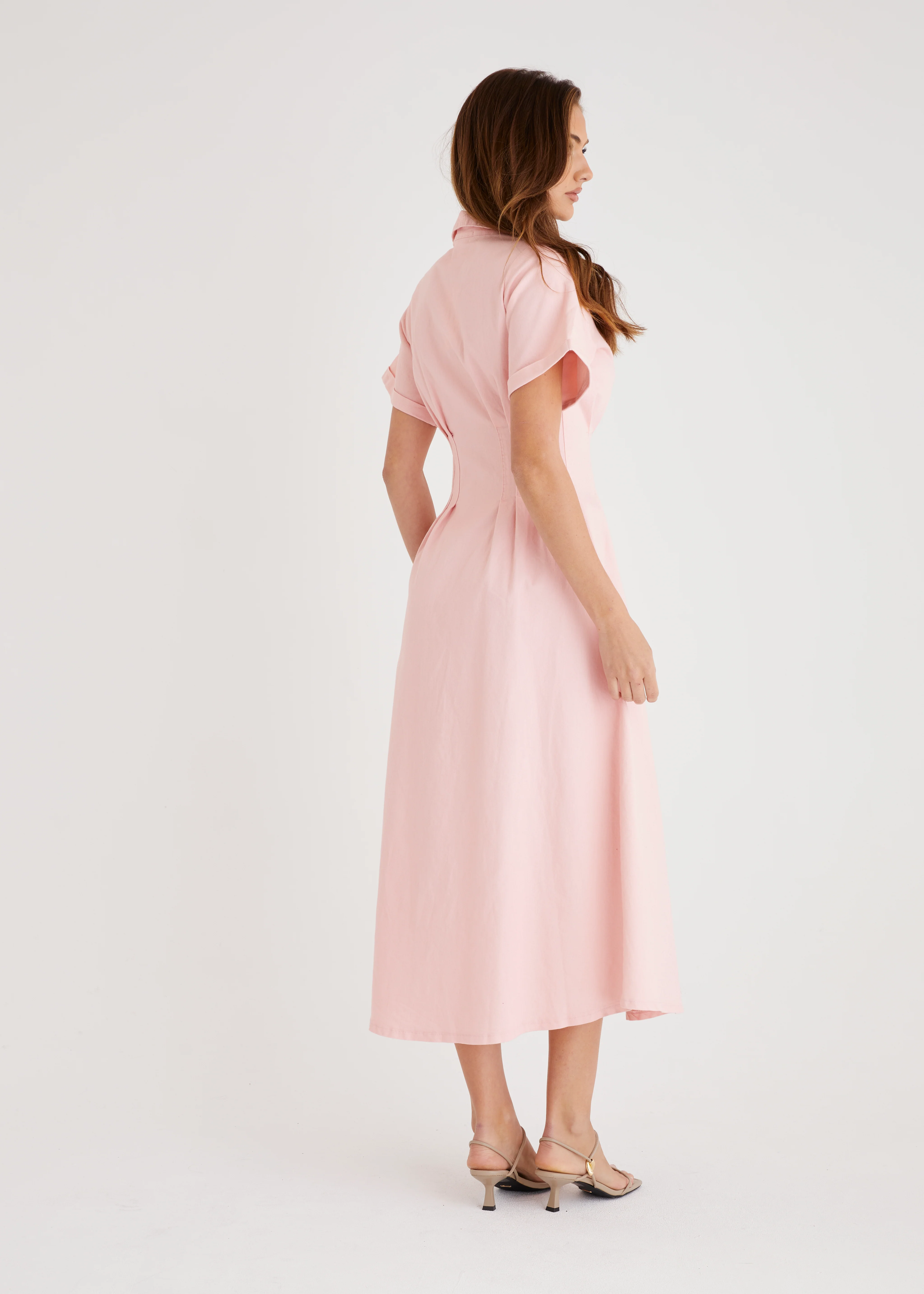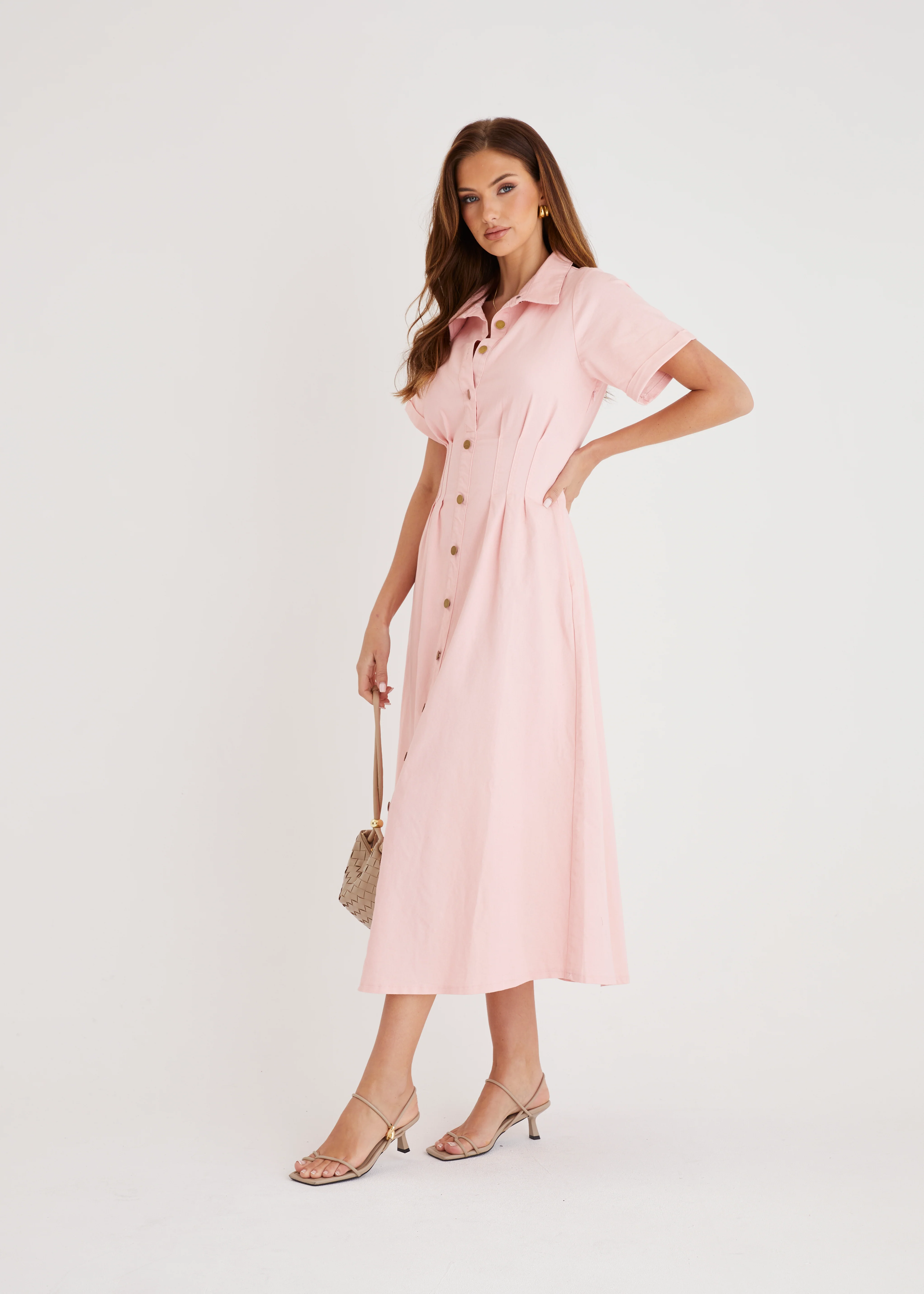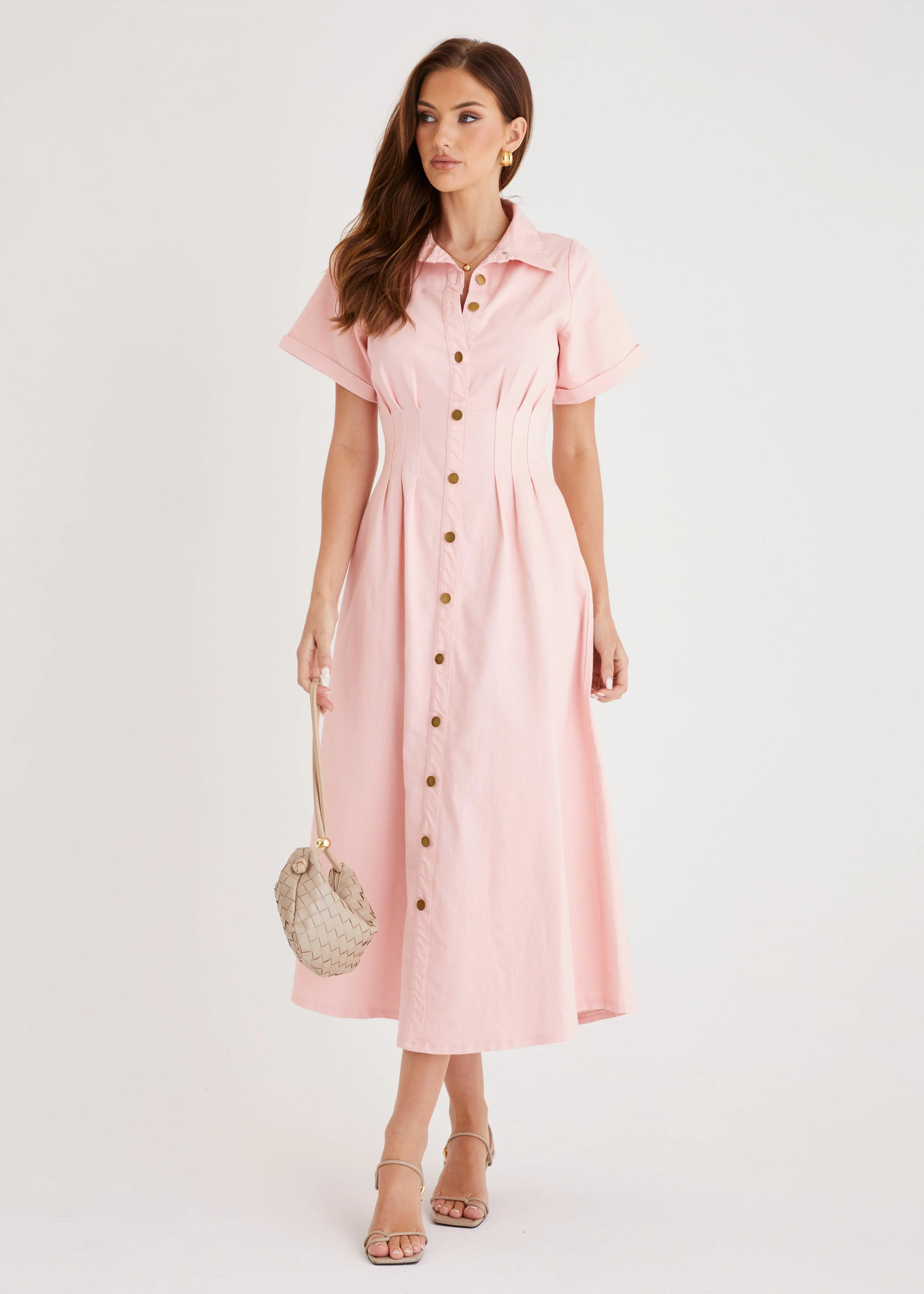 Annika Denim Midi Dress - Pink