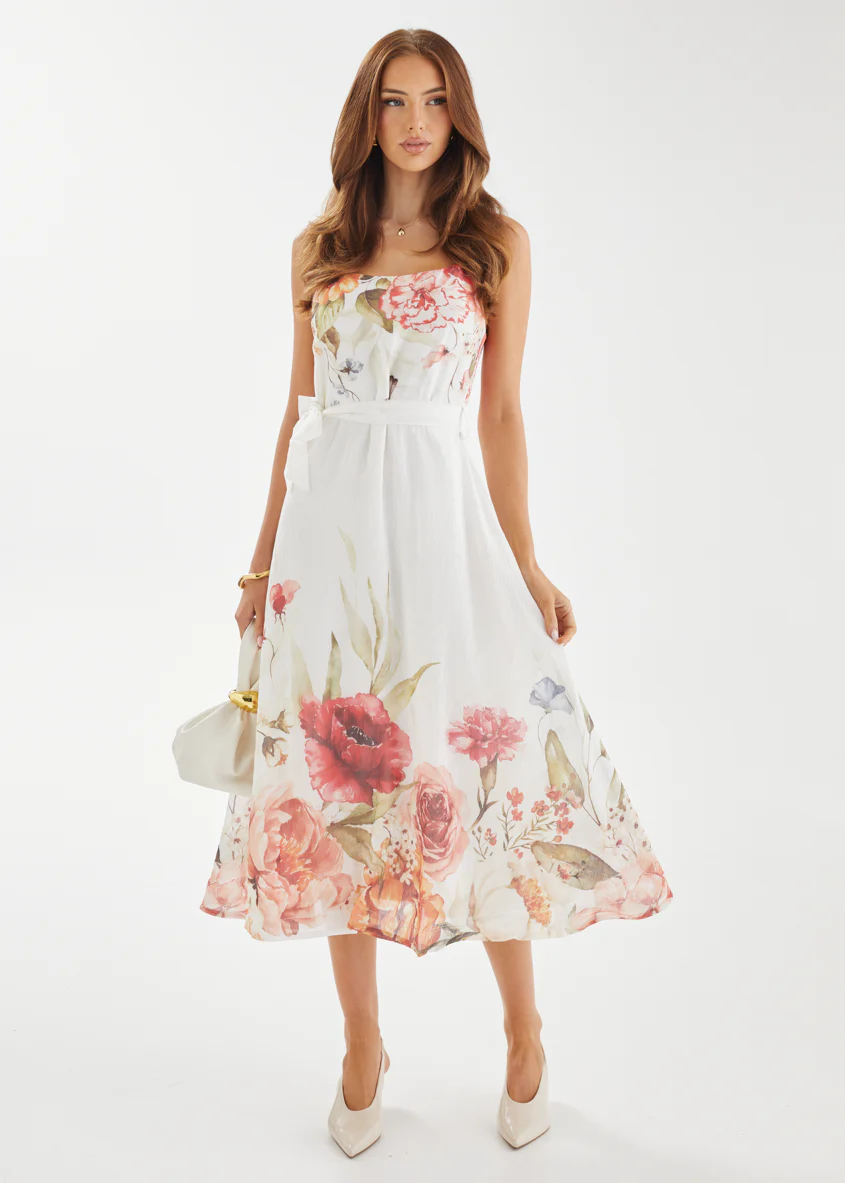 Andrea Midi Dress - White Garden