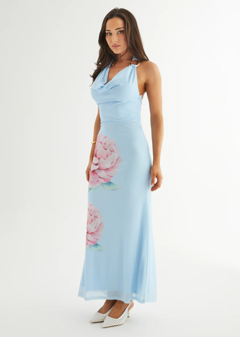 Amarli Mesh Maxi Dress - Blue Flowers