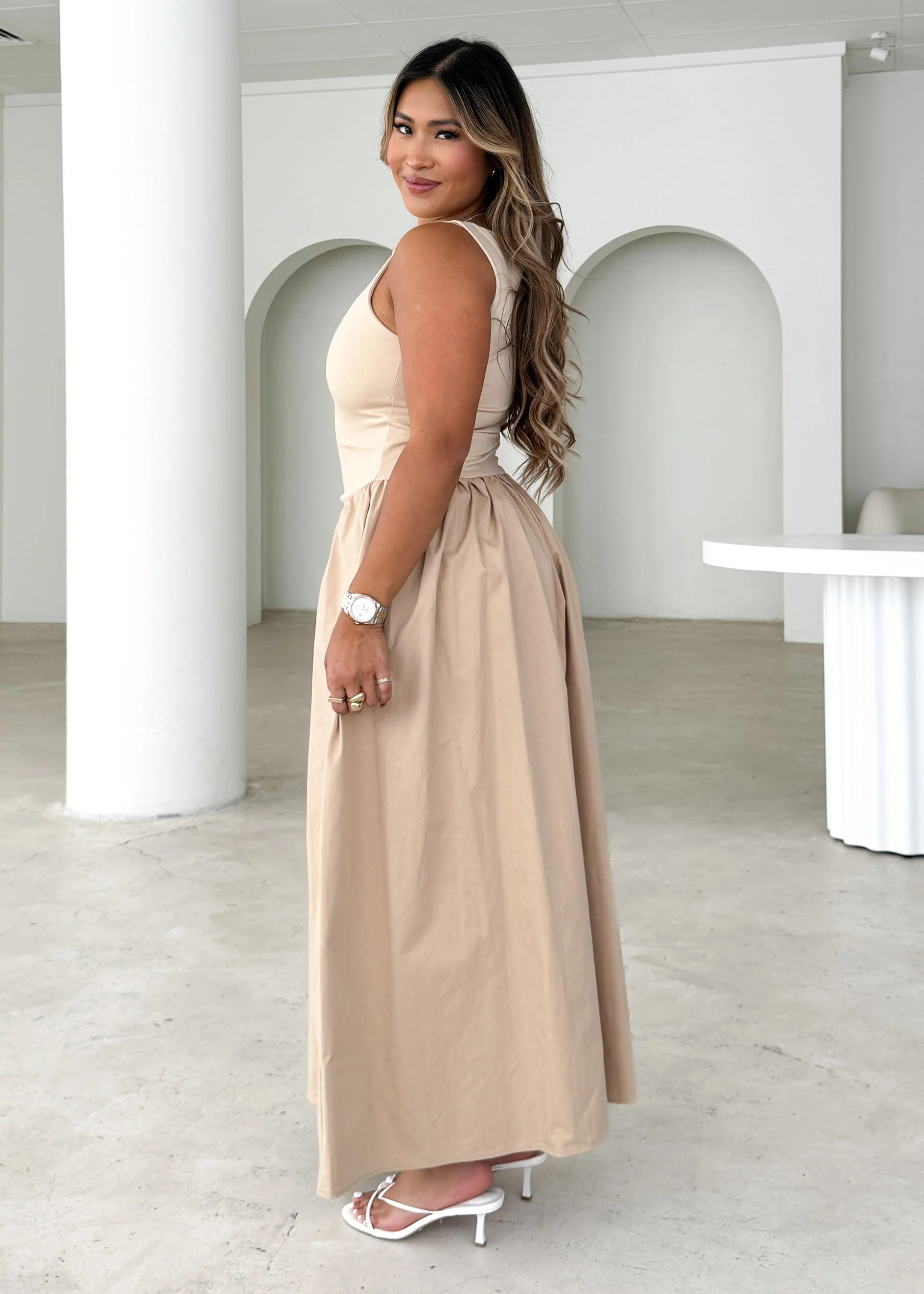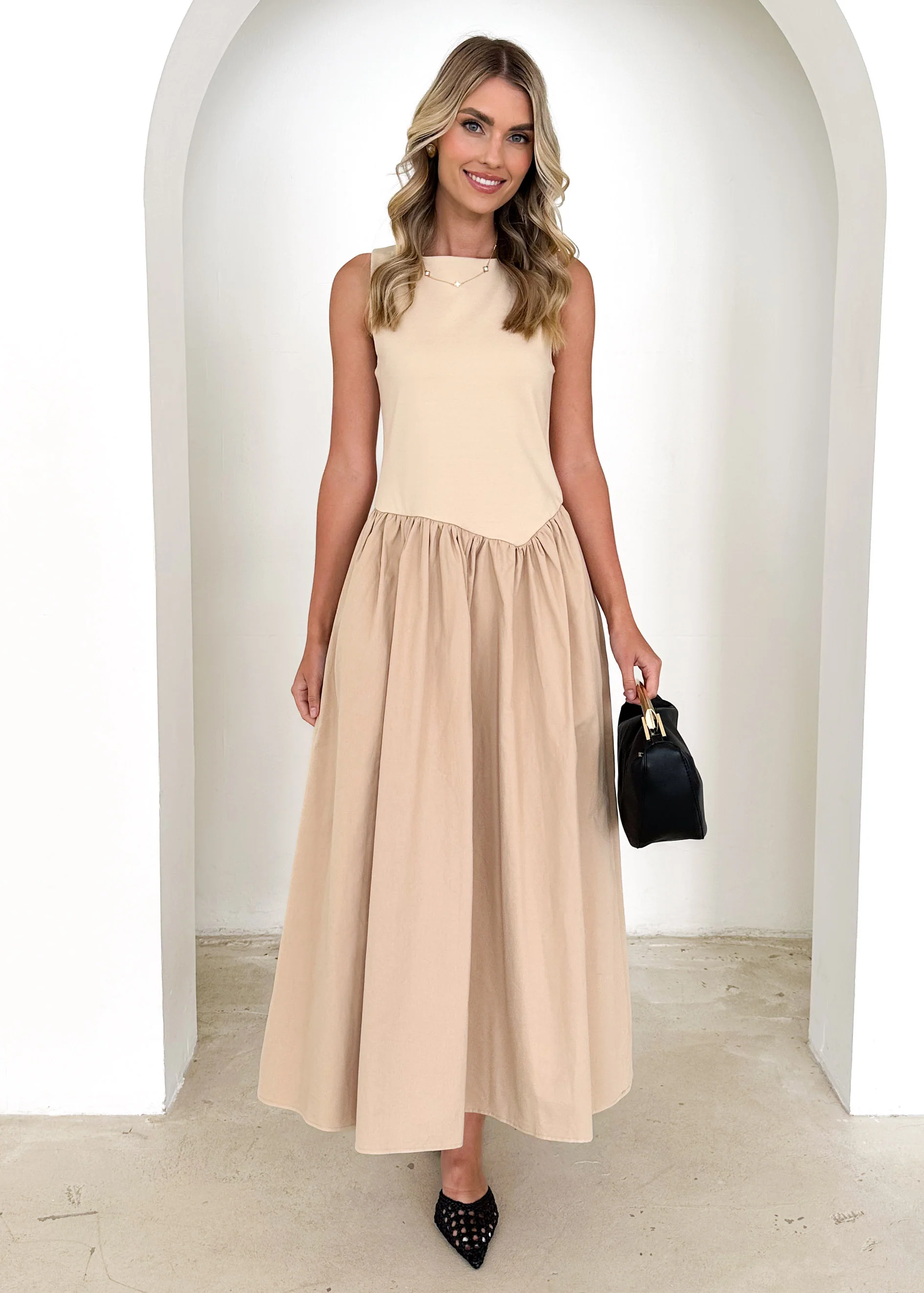 Annaleise Midi Dress - Beige