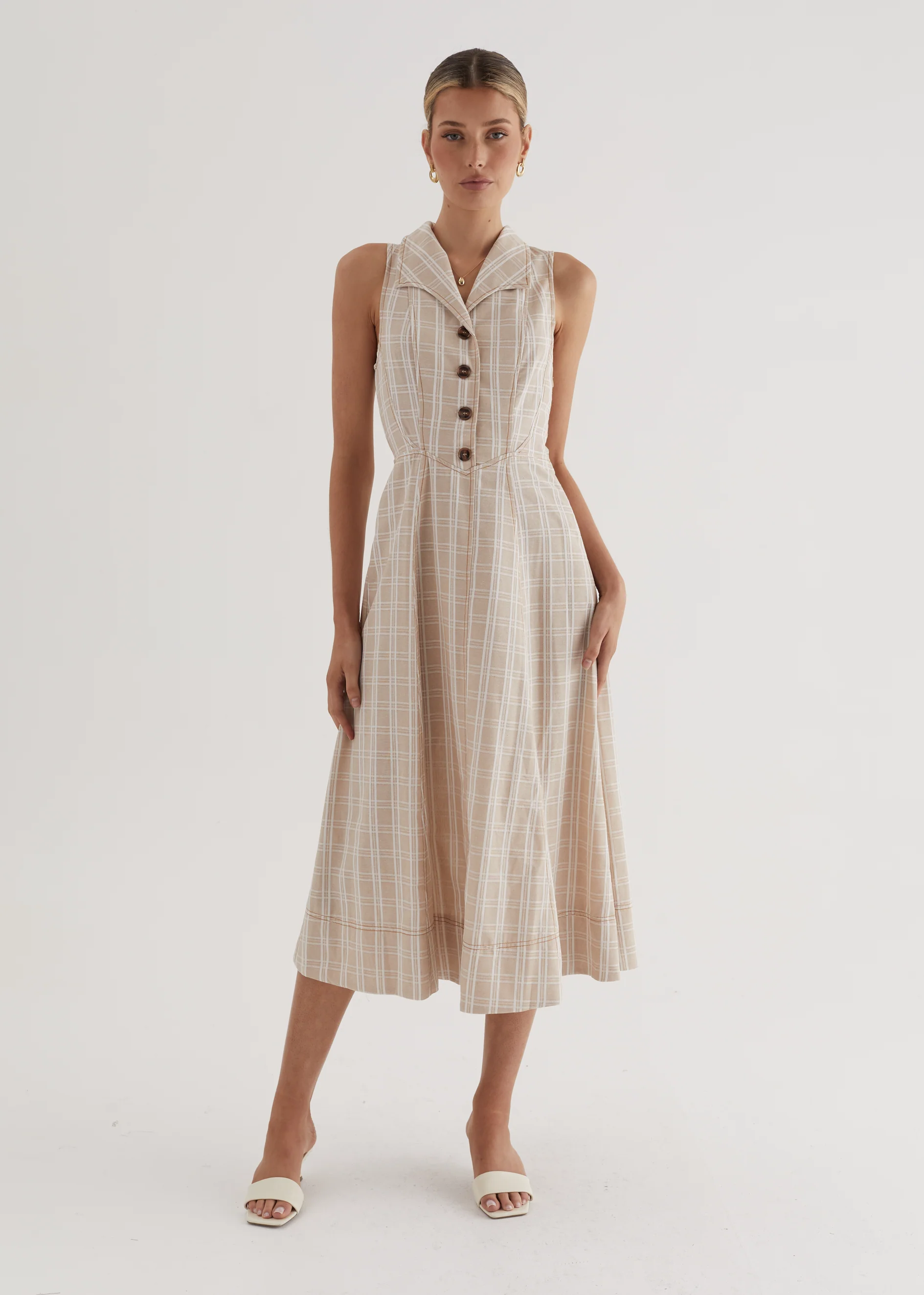 Annie Midi Dress - Beige Check