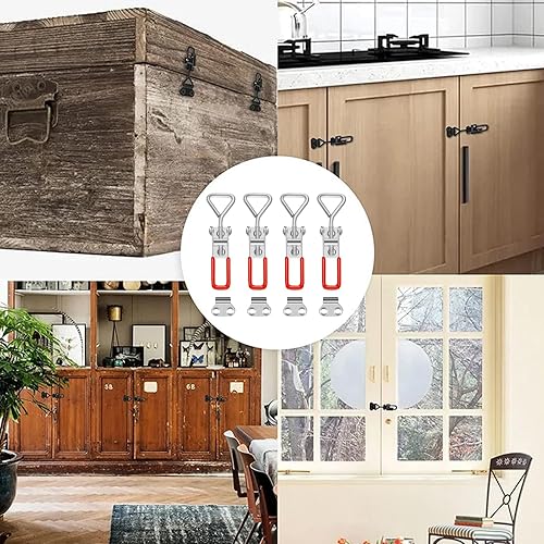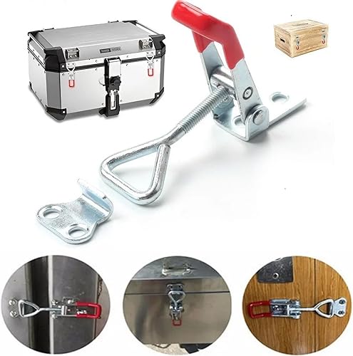 8 Pezzi Chiusura a Leva Regolabile in Metallo, Blocco Leva Fibbia a Stecca 100kg Forza di Serraggio Morsetti a Ginocchiera Chiavistello con 32 Viti per Cassa per Scatole di Armadi, Porte e Finestre