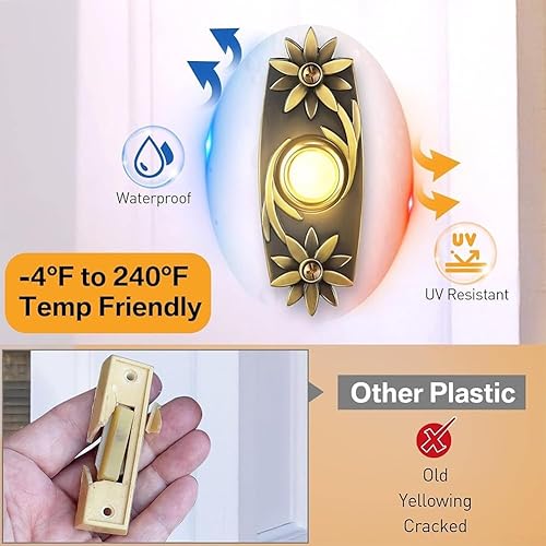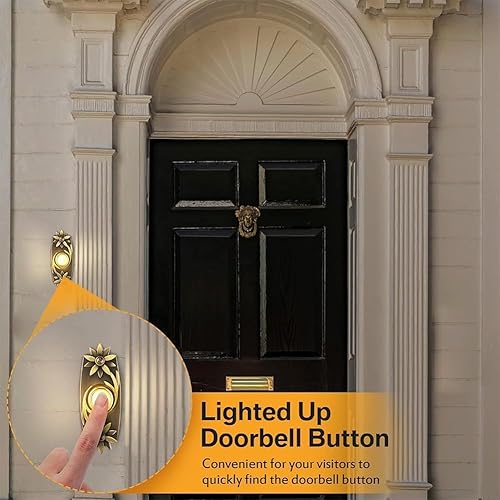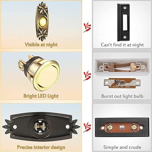 Pulsante campanello cablato, pulsante campanello in metallo solido, pulsante per campanello in ottone anticato bronzo, campanello impermeabile con luce LED, per porta d'ingresso