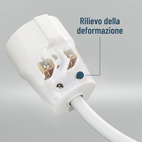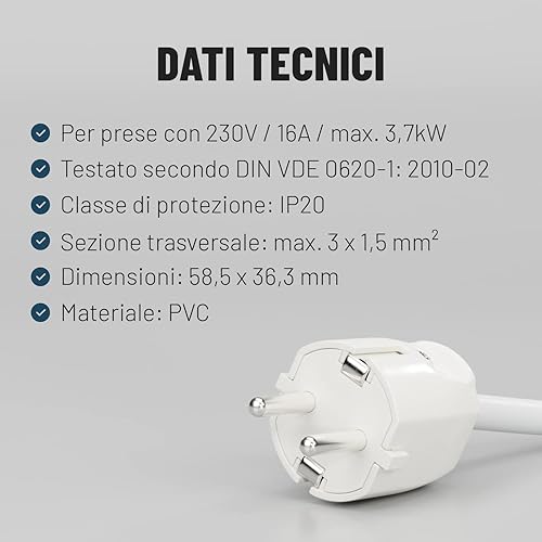 ABSINA 6x Spina schuko maschio bianca con scarico della trazione - Spina di sicurezza in PVC 230V, 2 poli, 16A e 3,7kW - Spina di sicurezza IP20 per uso interno - spina volante schuko per cavo 230V
