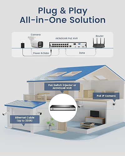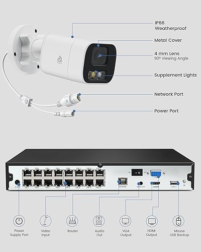 AKINGUAR 5MP PoE Kit Videosorveglianza Esterno, 4K NVR 16CH 4TB + 16x 5MP Telecamere, Rilevamento Intelligente di Uomo/Veicolo, Audio Bidirezionale, Visione Notturna a Colori 30m, Sirena Spotlight