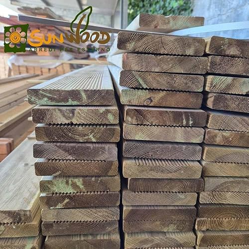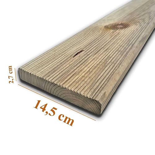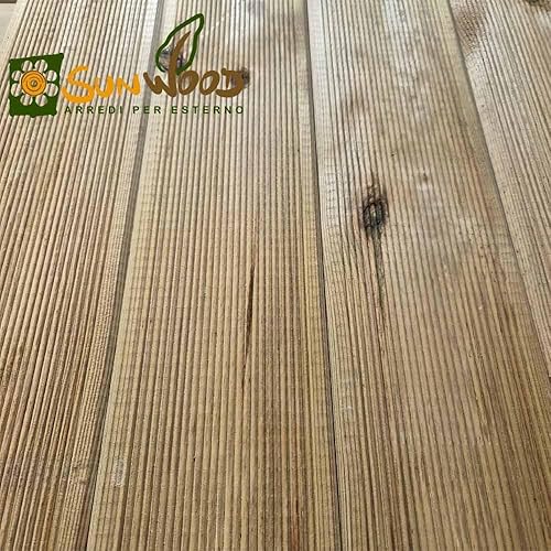 Pavimento esterno in legno da 300 cm, Listone decking zigrinato sezione 14,5x2,7 cm, in pino impregnato classe IV - per pavimentazioni, rivestimenti, piscina giardino, esterno