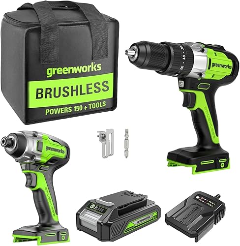 Greenworks Martello perforatore a batteria da 24 V, 1,2 J, con avvitatore a percussione 300 Nm, batteria da 2 Ah e caricatore