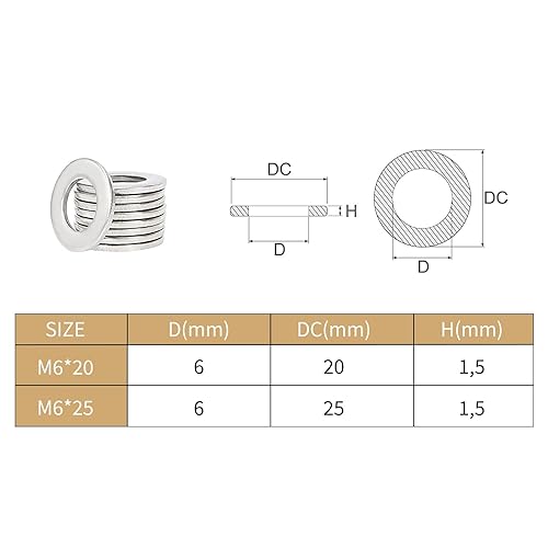 M6X20MM Rondelle Piatte Acciaio Inossidabile 304, 40 Pezzi Rondella Acciaio, per Viti, Dadi, Barra Filettata
