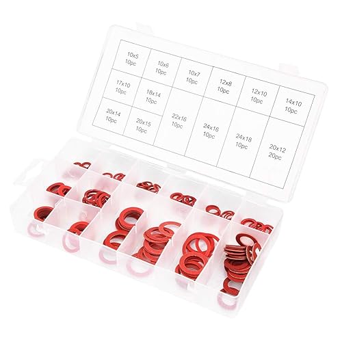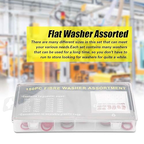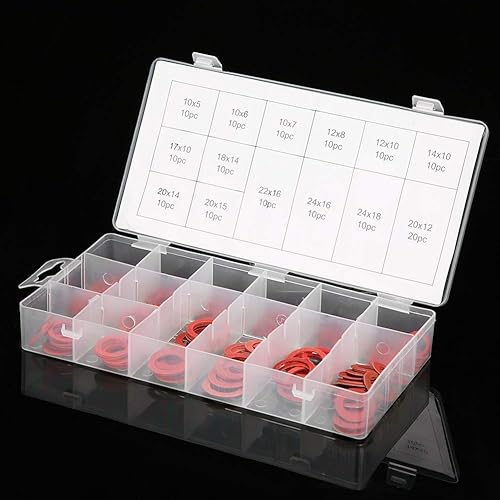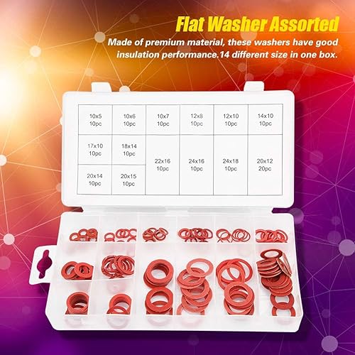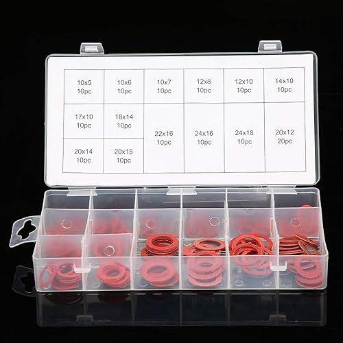 Kit Assortiti di Rondella in Fibra,150 pezzi Anello di Guarnizione Kit di Rondelle Isolanti,14 Misure Rondella Piatta Kit di Rondelle Piatte in Fibra di Acciaio Rosso con Scatola