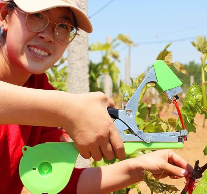 Legatrice per piante, legatrice per piante, strumento per legare piante da giardino, legatrice a mano, strumento agricolo per verdure, uva, pomodoro, cetriolo, fiore, giallo