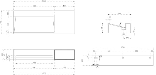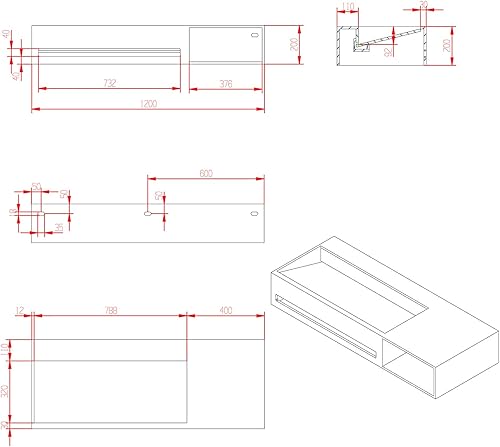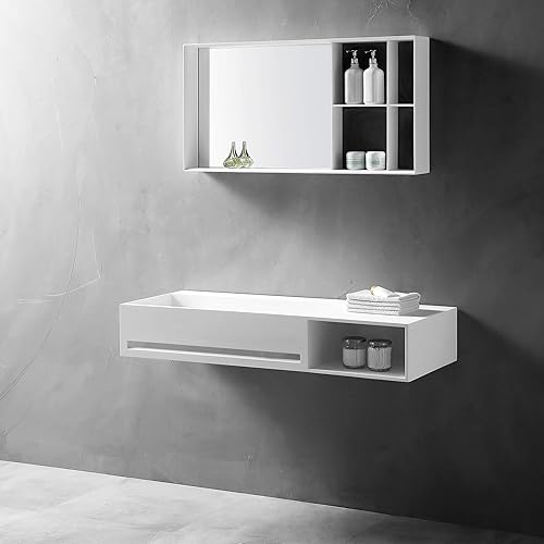 Lavabo sospeso con portaoggetti e porta asciugamani TWG62 - Solid Surface - bianco opaco, Larghezza lavabo:120 cm
