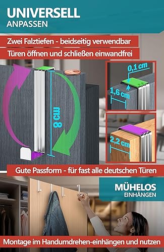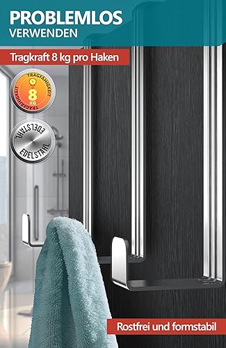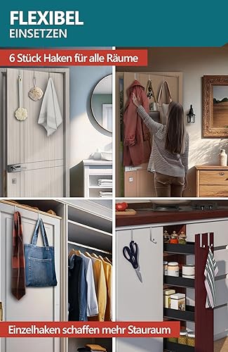 Appendiabiti da Porta, Bianco - 6 x Acciaio Inox Attaccapanni - Gancio Porta con Elevata Capacità di Carico, Versatili Ganci Adatti Ovunque