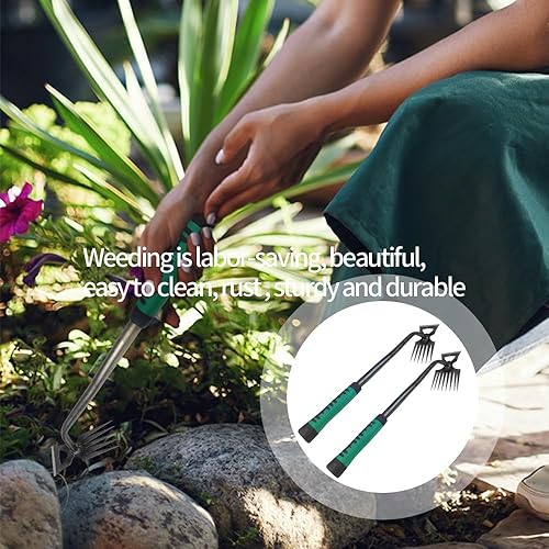 2 Pezzi Sarchiatore Manuale con Manico,Earchiatore per Erbacce Professionale,Attrezzi per Diserbo,Estirpatore Erbacce orto,Diserbatrice Manuale,Estirpatore Erbacce Manuale (2 Grandi)
