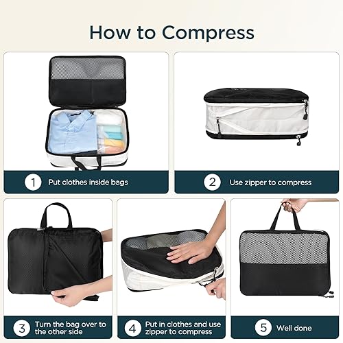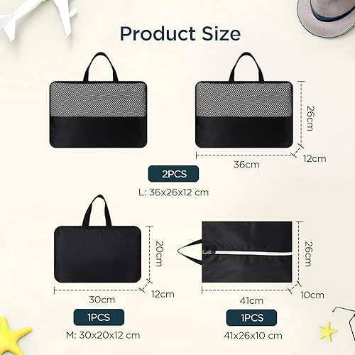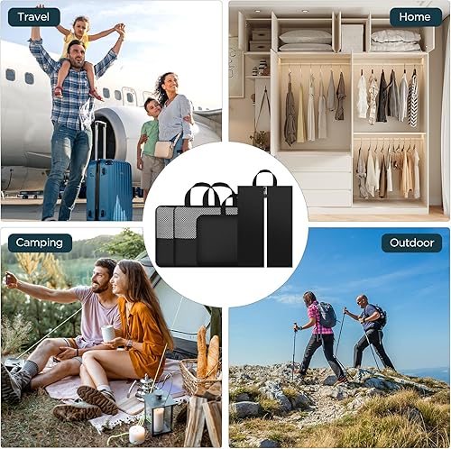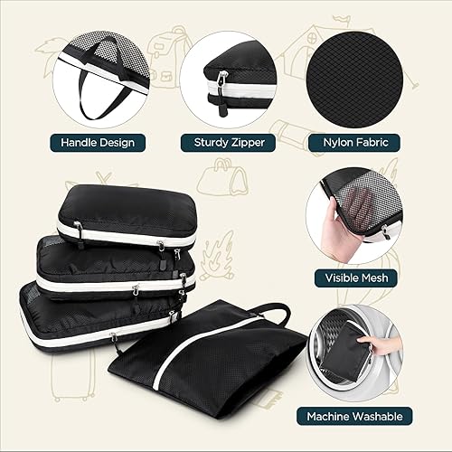 Set di 4 Sacchetti a Compressione Doppia Faccia, 3 Cubi Compressione 1 Bustina per Scarpe, Compression Packing Cubes Organizer Valigia Salvaspazio per Viaggi, Escursioni e Crociere