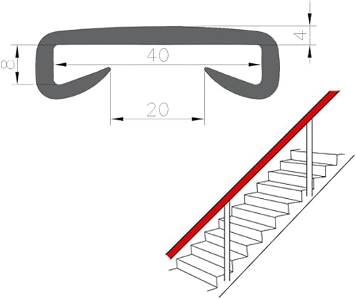 Listello per ringhiera PVC elastico adatto alla balaustra delle scale - Corrimano, 40x8mm, Marrone scuro
