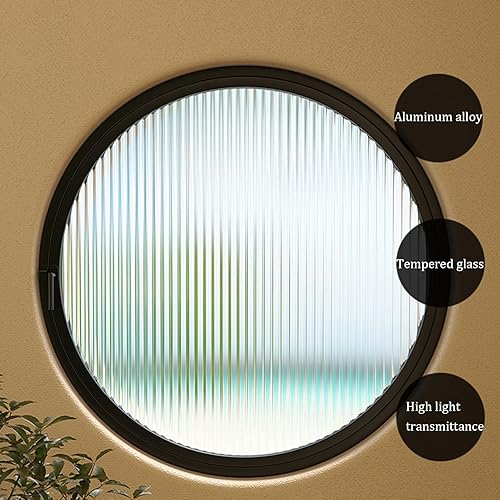 Finestre Ventilazione con Illuminazione in Lega Alluminio, Finestra A Battente Girevole, Vetro Temperato Incorporato, Adatto per Bagno, Camera da Letto, Soggiorno(Black Changhong Glass,50cm)