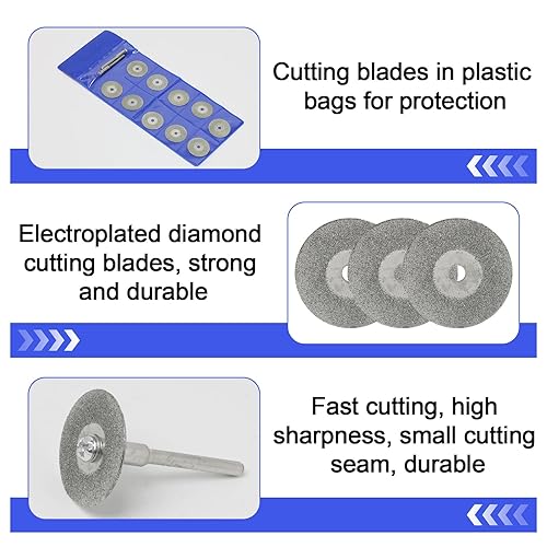 Mini Dischi Diamantati, 10 Pcs 22 MM Disco Diamantato da Taglio per Vetro con 2 Pcs core Albero, Lame per Seghe Circolari, Diamond Cutting Wheel per Legno, Alluminio, Plastica, Metall