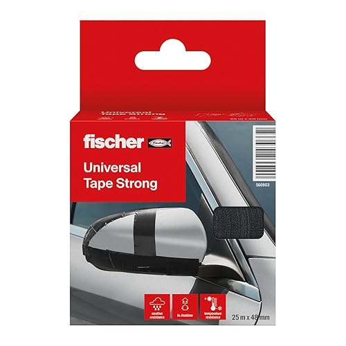 Fischer Nastro Universale Strong, Nastro Adesivo Telato Americano Forte, Multiuso Resistente alle Intemperie per Riparazioni, Fissaggio, Sigillatura, 25 m x 48 mm, Nero, 560903