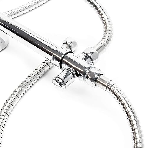 Wiltec Colonna doccia con soffione quadrato, doccetta, asta saliscendi, cromo