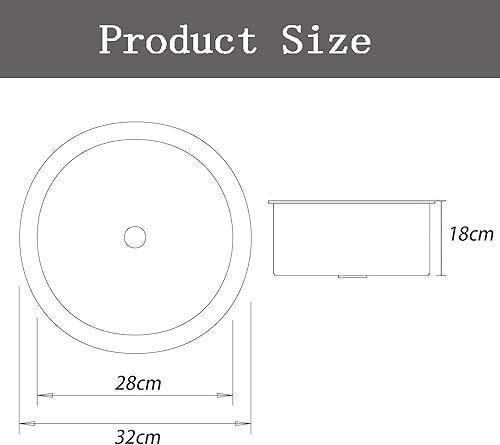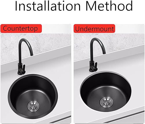 Lavello Cucina 1 Vasca Nero,Lavandino Cucina Piccolo,Lavelli da Cucina Acciaio Inox,Lavabo Rotondo con Set Di Drenaggio,Installazione Appoggio o Sottopiano (Ø 42cm)