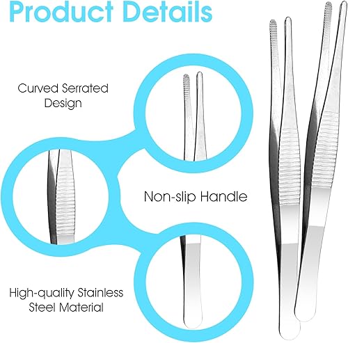 3 pinzette a punta, in acciaio inox, lunghe pinzette smussate, con punta seghettata, professionale, antiscivolo, dritta, per la creazione di gioielli fai da te